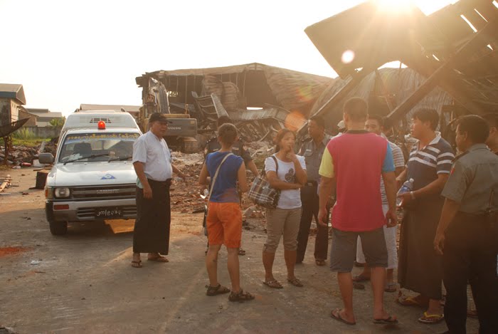 ၁၂၊ ၄၊ ၂၀၁၂ ရက္ေန႔ သႀကၤန္အႀကိဳေန႔တြင္ လိႈင္သာယာၿမိဳ႕နယ္ရွိ ေဖာ့ဘူးစက္႐ံုမီးေလာင္ကြၽမ္းမႈတြင္ အေဆာက္အဦး အပ်က္အစီးမ်ား အား ႐ွင္းလင္းဖယ္ရွားရာ၌ ႏိုင္ငံျခားသားတစ္ဦး၏ မီးေလာင္ကြၽမ္း၍ေသဆံုးေနေသာ႐ုပ္အေလာင္းအား ေတြ႔ရွိေသာေၾကာင့္ ယေန႔ ၁၃၊ ၄၊ ၂၀၁၂ (သႀကၤန္အက်ေန႔) တြင္ နာေရးကူညီမႈအသင္း (ရန္ကုန္) သို႔ ဆက္သြယ္အကူအညီေတာင္းခံလာသည့္အတြက္ နာေရးကူညီမႈအသင္း (ရန္ကုန္) သည္ ဝန္ထမ္းမ်ား႐ံုးဆင္းခ်ိန္ျဖစ္ေသာ္လည္း အေရးေပၚသြားေရာက္ကူညီေဖးမမႈကို သက္ဆိုင္ရာ မီးသတ္ဦးစီး႒ာနဝန္ထမ္းမ်ား ႏွင့္ ျမန္မာႏိုင္ငံျပည္သူ႔ရဲတပ္ဖြဲ႔ဝင္မ်ားႏွင့္ ပူးေပါင္း လုပ္ကိုင္ေပးခဲ့သည္။ ထုိ႔ေၾကာင့္ အမ်ားသူငါ ေပ်ာ္ရႊင္ၾကည္ႏူးစြာ ေရကစားေနၾကေသာ မဟာသႀကၤန္ပြဲေတာ္ရက္တြင္ နာေရးကူညီမႈအသင္း (ရန္ကုန္) အေနျဖင့္ ေသဆံုးသူမိသားစု၏ အပူမီးမ်ားကို လုိက္လံၿငိမ္းသတ္ေပးေနခဲ့ရ သည္။ တနည္းအားျဖင့္ နာေရးကာယကံ႐ွင္မိသားစုမ်ား၏ ကုိယ္တြင္းအပူမီးမ်ားကို ၿငိမ္းသတ္ေပးေနျခင္းပင္ျဖစ္ေတာ့သည္။