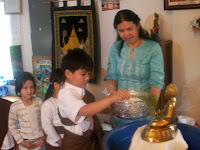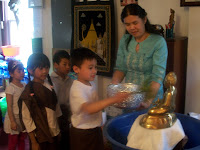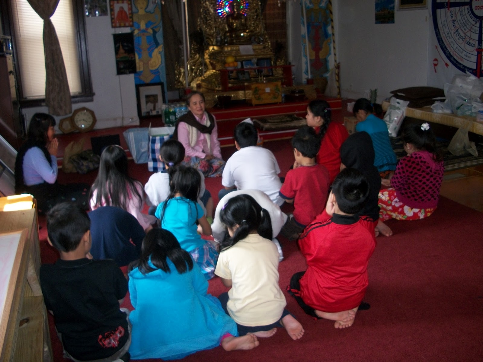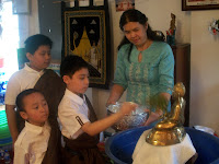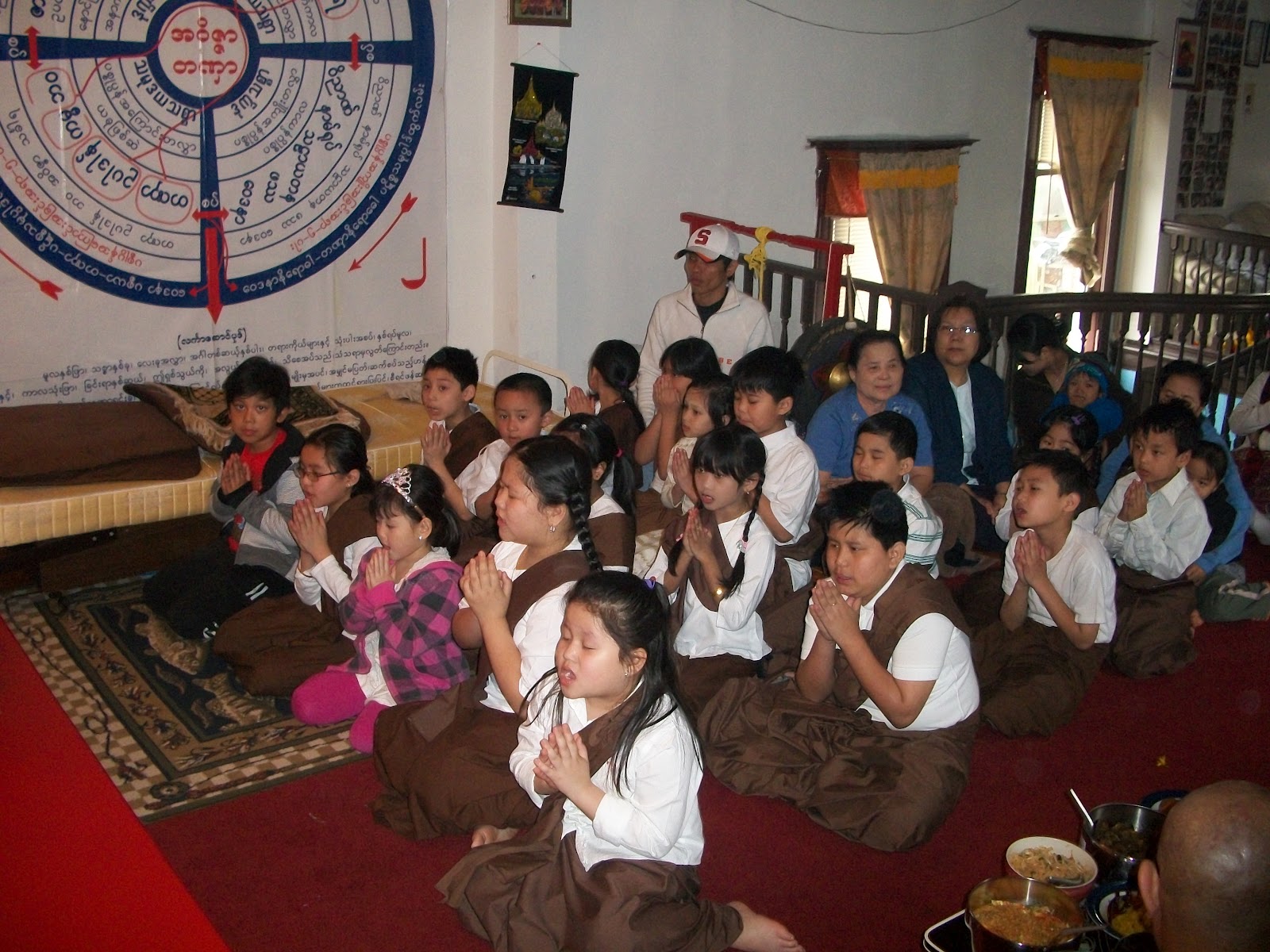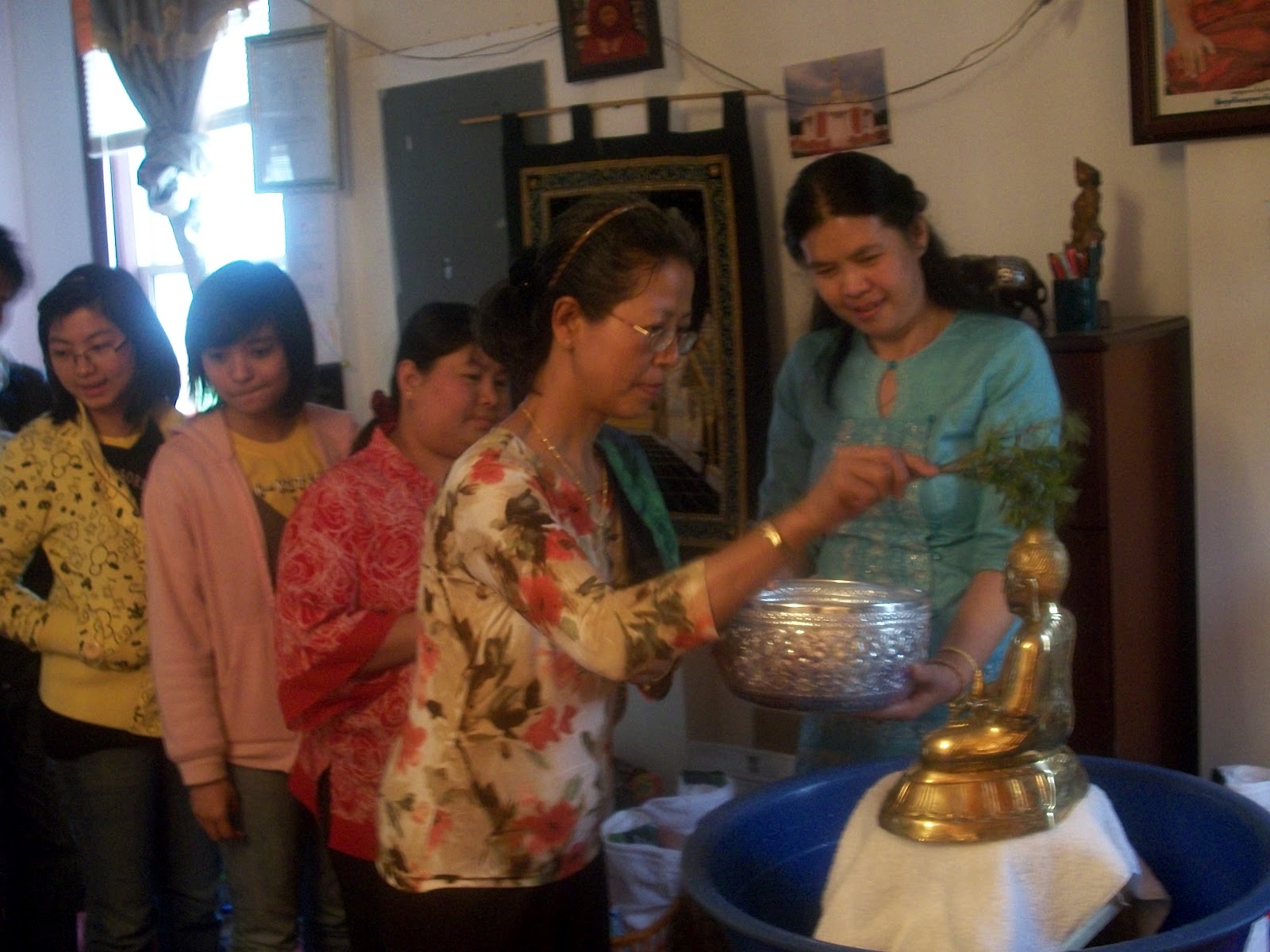 ၿပဳၾကပါသည္။ ေန႔လည္ (၁) နာရီတြင္ ေက်ာင္းထိုင္ဆရာေတာ္ အရွင္ပညာနႏၵထံမွ ငါးပါးသီလ ခံယူေဆာက္တည္ၾကၿပီး ပရိတ္တရားေတာ္မ်ား နာၾကားၿခင္း၊ ျမန္မာျပည္ၾကီး အျမန္ၿငိမ္းခ်မ္းသာယာပါေစေၾကာင္း စုေပါင္းေမတၱာပုိ ့သၿခင္းႏွင့္ လွဴဘြယ္၀တၳဳအစုစုတုိ႔ကုိ လွဴဒါန္းၾကၿပီး ေရစက္သြန္းခ် အမွ်ေပးေ၀ၾကပါသည္။