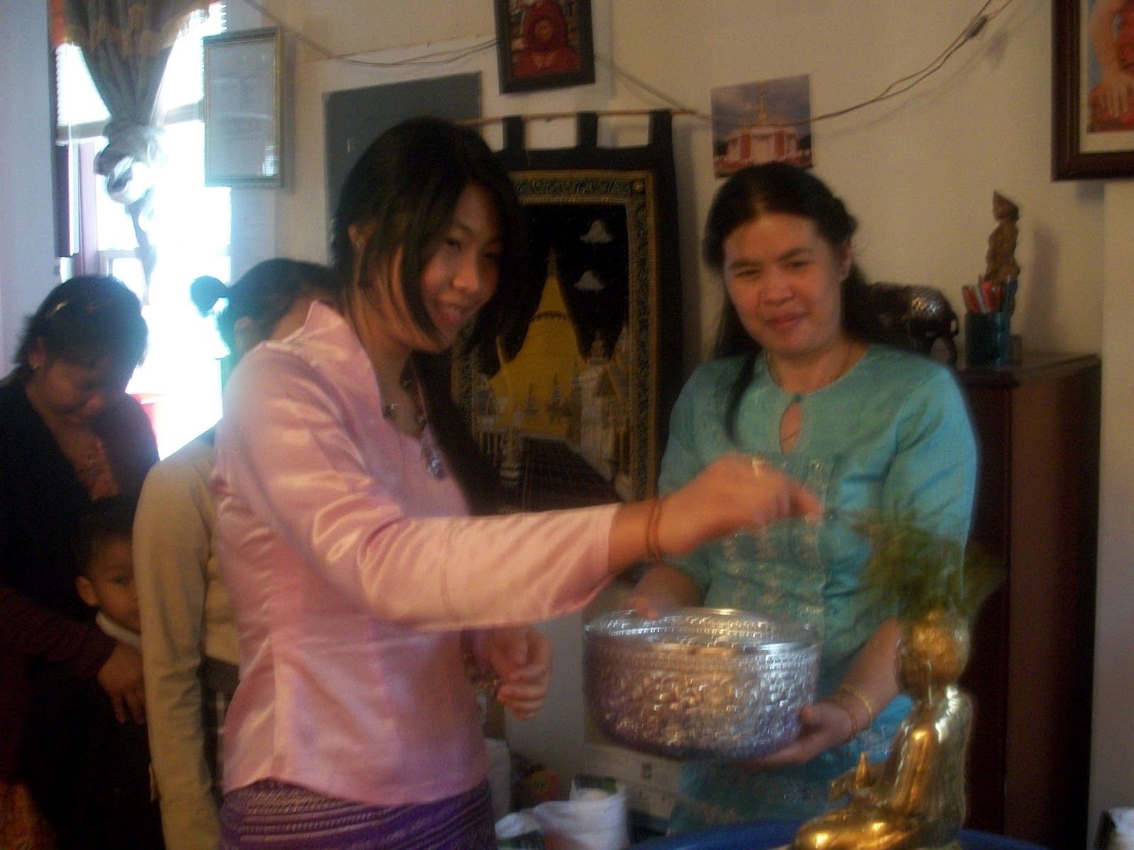 မနက္(၁၀)နာရီအခ်ိန္တြင္ “နေမာတႆ” သုံးၾကိမ္ရြတ္ဆုိ အခမ္းအနားဖြင့္လွစ္ကာဗုဒၶရုပ္ပြားေတာ္ျမတ္အား ေရသပၸါယ္ၿခင္း၊ သံဃာေတာ္ အရွင္သူျမတ္တုိ႔ အားဆြမ္းကပ္လွဴဒါန္းၿခင္း စေသာ ႏွစ္သစ္ကူး ေကာင္းမႈမဂၤလာမ်ား