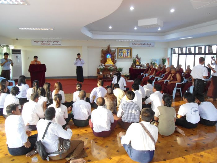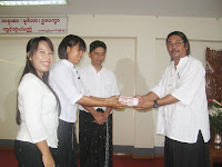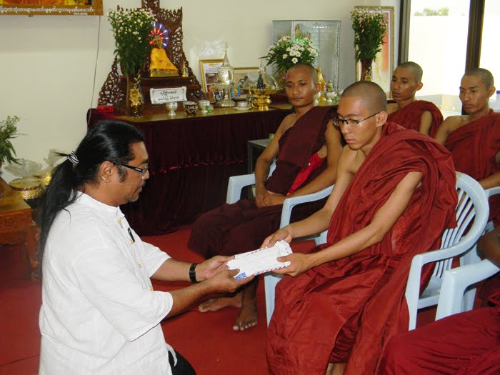 အခမ္းအနားတြင္ (၈၈) ေက်ာင္းေခါင္းေဆာင္ ကိုမင္းကိုႏိုင္မွ အလွဴေငြေပးအပ္ျခင္းႏွင့္ပတ္သက္၍ ရွင္းလင္းေျပာၾကားျခင္း၊ နာေရးကူညီ မႈအသင္း (ရန္ကုန္) သို႔ အလွဴေငြေပးအပ္ျခင္း၊ “ေမာင္ေမာင္ဆိုေလ ထီး႐ိုးရွည္” အဖြဲ႔အား ဂုဏ္ျပဳဆုေငြခ်ီးျမႇင့္ျခင္း၊ ေရႊညဝါေက်ာင္းတိုက္ (ေမွာ္ဘီ) ၌ သကၤန္းစီး၍ သီတင္းသံုးေနၾကေသာ (၈၈) ေက်ာင္းသားအဖြဲ႔ သံဃာေတာ္မ်ားကပါ နာေရးကူညီမႈအသင္း (ရန္ကုန္) သို႔ အလွဴ ေငြ တစ္သိန္းခြဲႏွင့္ သုခရိပ္ျမံဳ HIV မိဘမဲ့ကေလးေဂဟာသို႔လည္း အလွဴေငြ တစ္သိန္းခြဲ အသီးသီးလွဴဒါန္းခဲ့ၾကသည္။ (၈၈) ေက်ာင္းသား သံဃာေတာ္မ်ားသည္ ပူျပင္းလွေသာ ရာသီဥတု၏ေအာက္ဝယ္ ဖိနပ္မပါ ထီးမပါဘဲ ဆြမ္းခံႂကြစဥ္က ျပည္သူလူထုမွ လွဴဒါန္းမႈျပဳၾကေသာ ဝတၳဳေငြမ်ားကို ယခုကဲ့သို႔ သာသနာျပဳရင္း အလွဴဒါနျပဳခဲ့ျခင္းျဖစ္သည္။ ထို႔အတူ (၈၈) ေက်ာင္းသားေခါင္းေဆာင္ ကိုမင္းကိုႏိုင္ ဦးစီးေသာ သႀကၤန္သံခ်ပ္အဖြဲ႔သည္လည္း ေႏြရာသီ၏ ပူျပင္းေသာဒဏ္ကို ၾက့ံၾကံ့ခကာ ျပည္သူလူထုတို႔အား သံခ်ပ္သမိုင္းကို ျပန္လည္ေဖာ္ထုတ္ရင္းႏွင့္ ရ႐ွိခဲ့ေသာ အလွဴေငြမ်ားထဲမွ နာေရးကူညီမႈအသင္း (ရန္ကုန္) သို႔ (၁၀) သိန္းက်ပ္တိတိႏွင့္ “ေမာင္ေမာင္ဆိုေလ ထီး႐ိုးရွည္” သံခ်ပ္အဖြဲ႔အား (၁၀) သိန္းက်ပ္တိတိ ခ်ီးျမႇင့္ဂုဏ္ျပဳ လွဴဒါန္းခဲ့သည္။