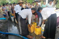 ေသာက္သံုးေရကန္မ်ားခန္းေျခာက္ၿပီး ေသာက္သံုးေရျပတ္လပ္မႈကို ရင္ဆိုင္ေနၾကရသည့္ ရန္ကုန္တိုင္း၊ ေတာင္ပိုင္းခ႐ိုင္၊ ဒလၿမိဳ႕နယ္အ တြင္းတြင္ ေသာက္သံုးေရမ်ား လံုေလာက္စြာရရွိရန္အတြက္ ၄.၅.၂၀၁၂ ရက္ေန႔ နံနက္ (၉း၀၀) နာရီအခ်ိန္တြင္ နာေရးကူညီမႈအသင္း (ရန္ကုန္) မွ အုပ္ခ်ဳပ္ေရးမွဴး ေဒၚဧရာေမာင္ေမာင္၊ အလုပ္အမႈေဆာင္ ဦးတင္ေမာင္ေအးတို႔ဦးေဆာင္၍ အသင္းသားမ်ားတို႔သည္ ေ႐ႊျပည္ သာၿမိဳ႕နယ္ရွိ Tun Linn Group Construction Co.,Ltd. ေျမသယ္ယာဥ္၊ ယႏၲရားမ်ားႏွင့္ Tran sporter ငွားရမ္းျခင္းလုပ္ငန္းမွ ေရဂါလံ (၂၄၀၀) ဆန္႔ေမာ္ေတာ္ယာဥ္တစ္စီး (အခမဲ့) ကူညီပံ့ပိုးေပးမႈႏွင့္အတူ တြံေတးတံတားအဆင္းရွိ (ရန္ကုန္ေပါက္) ရွိ လူေနအိမ္မွ အဝီစိေရ တြင္းမွ ေရလွဴဒါန္းသည့္အတြက္ ေရဂါလံ (၂၄၀၀) ဆန္႔ေမာ္ေတာ္ယာဥ္ေပၚသို႔ေရျဖည့္ကာ က်န္စစ္သားရပ္ကြက္ရွိ ေရဒုကၡသည္မ်ား ထံ သို႔ ႏွစ္ေခါက္တိုင္တိုင္သယ္ယူပို႔ေဆာင္ခဲ့ရာ ေသာက္သံုးေရ (၄၈၀၀) ဂါလံအား အိမ္ေထာင္စု (၁၂၀၀) ေက်ာ္ခန္႔အတြက္ လွဴဒါန္းခဲ့ၾကသည္။ က်န္စစ္သားရပ္ကြက္ရွိ ေသာက္သံုးေရေလွာင္ကန္ ဂါလံ (၄၈၀၀) ဆန္႔အုတ္ကန္တြင္းသို႔ ျဖည့္တင္းေပးၿပီး ရပ္ကြက္တြင္းရွိ ေရဒုကၡသည္ အိမ္ေထာင္စုမ်ား (တစ္အိမ္မက်န္) ေသာက္ေရရရွိႏိုင္ရန္ တိုကင္စနစ္ျဖင့္ ေဒသခံတို႔မွ စီစဥ္ေဆာင္ရြက္ကာ ေသာက္ေရမ်ား ေဝငွလွဴဒါန္း ခဲ့ၾကၿပီး ယင္းေန႔ ည (၈း၃၀) နာရီအခ်ိန္တြင္ နာေရးကူညီမႈအသင္း (ရန္ကုန္) ႐ံုးခ်ဳပ္သို႔ ျပန္လည္ေရာက္ရွိခဲ့သည္။
