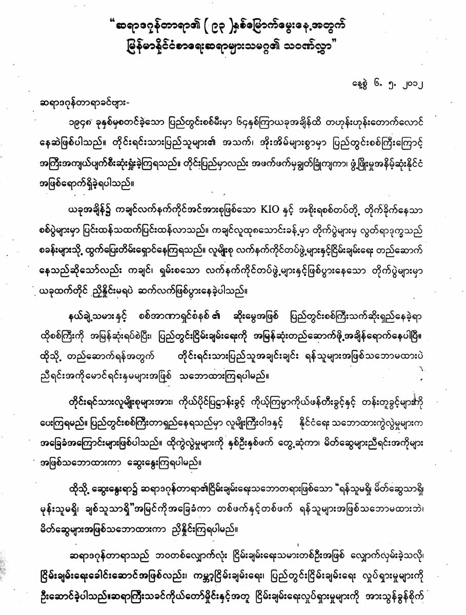 ျမန္မာႏုိင္ငံစာေရးဆရာမ်ား သမဂၢ၏ သ၀ဏ္လႊာ