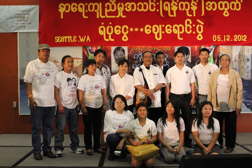 (၀၅၊ ၁၂၊ ၂၀၁၂) ေန႔မွာ ကိုေက်ာ္သူ၊ မေရႊဇီးကြက္တို႔နဲ ့ ျပည္ပေရာက္ျမန္မာျပည္သားမ်ားေတြ႕ဆုံပြဲကို North Seattle Community college ရဲ႕ Center cafeteria မွာ ညေန (၃) နာရီမွ ည (၈း၃၀) ထိ က်င္းပခဲ့ၾကပါတယ္။