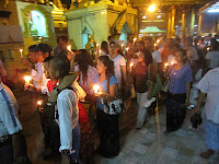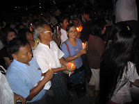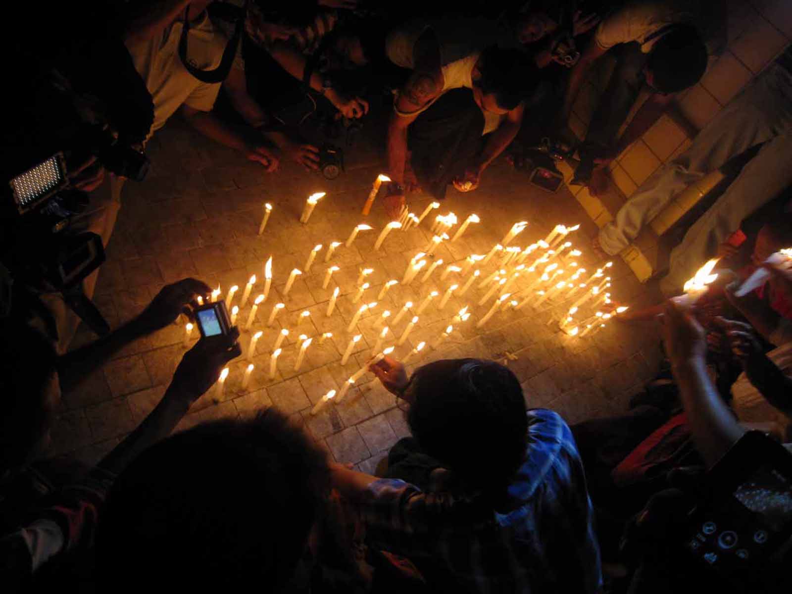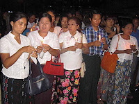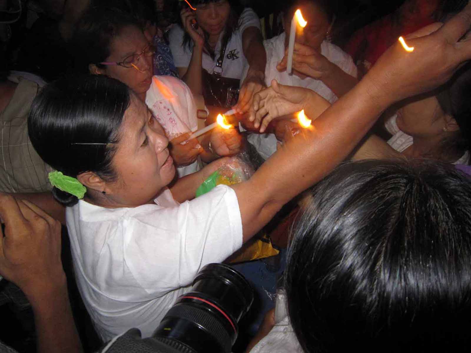 အြန္လိုင္းနဲ႔ အသံလႊင့္ မီဒီယာေတြမွ တစ္ဆင့္ ဒီလူထု ဆႏၵေဖာ္ထုတ္ပြဲအေၾကာင္း ၾကားသိၾကတဲ့ အလႊာအသီးသီးမွ ျပည္သူအင္အား သံုးရာ ေက်ာ္ခန္႔နဲ႔ အားေပးၾကည့္ရႈသူပရိသတ္ ေထာင္ေပါင္းမ်ားစြာတို႔ဟာ ကားမွတ္တိုင္အနီး မိမိတို႔ သေဘာဆႏၵအေလ်ာက္ စုရံုးေရာက္ရွိလာခဲ့ၾက ပါတယ္။ ဆႏၵေဖာ္ထုတ္သူမ်ားက ည ၇း ၀၀ နာရီတိတိမွာ ဖေယာင္းတိုင္မီးမ်ားထြန္းညွိကာ ၿငိမ္းခ်မ္းစြာ စီတန္းလွည့္လည္၍ ဆူးေလေစတီ္ ရင္ျပင္ေတာ္ေပၚသို႔တက္ေရာက္ ဆီမီးပူေဇာ္ဆုေတာင္းၾကၿပီး ည ၇း၃၀ မွာ ေအာင္ျမင္စြာ လူစု ခြဲခဲ့ၾကပါတယ္။ ဆႏၵထုတ္ေဖာ္သူေတြထဲမွာ အဂၤါ၀တ္ျပဳဆုေတာင္းအဖြဲ႔က ေဒၚေနာ္အုံးလွကိုလည္း ေတြ႔ၾကရပါတယ္။