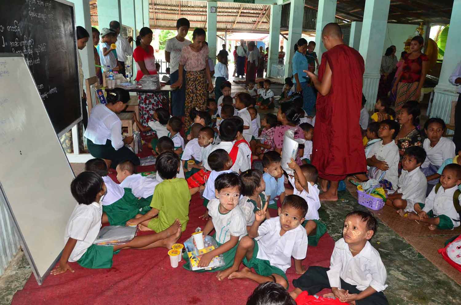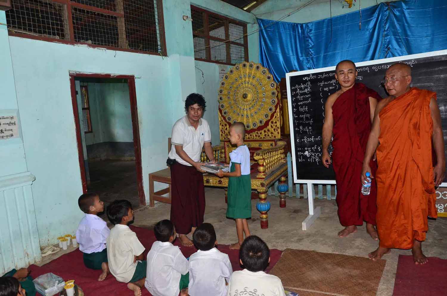 ေက်ာင္းတာ၀န္ခံ ဦးစႏၵာဓိကဟာ ေရႊ၀ါေရာင္ေတာ္လွန္ေရးတြင္ ပါ၀င္ခဲ့မႈေၾကာင့္ ေထာင္ဒဏ္က်ခံခဲ့ရၿပီး မၾကာေသးခင္ကမွ ေထာင္ကျပန္ လြတ္လာတဲ့ သံဃာေတာ္တစ္ပါး ျဖစ္ပါတယ္။ ဒီေက်ာင္းမွာ သူငယ္တန္းမွ စတုတၳတန္းအထိ ေက်ာင္းသူေက်ာင္းသား ၁၁၁ ေယာက္ရွိၿပီး သံဃာႏွစ္ပါးနဲ႔ ဆရာမသံုးေယာက္က တာ၀န္ယူသင္ၾကားေပးေနပါတယ္။ ေက်ာင္းအေဆာင္အဦ ေခါင္မိုးသြပ္မ်ား ေပါက္ၿပဲေနၿပီး စာသင္ခံု၊ ေက်ာင္း၀တ္စံု၊ ထီး၊ ဖိနပ္၊ မိုးကာ၊ စာေရးကိရိယာ၊ ဆရာမမ်ားအတြက္ လစာ စသည္ျဖင့္ လိုအပ္ခ်က္မ်ားစြာရွိေနေၾကာင္း သိရပါတယ္။