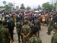မဲေဆာက္က စက္႐ံု အလုပ္႐ံုအသီးသီးက အလုပ္သမားေတြဟာ သြားလာေရးတင္းၾကပ္တဲ့ မယ္လအထိ လိုက္ပါသြားႏိုင္ျခင္း မရွိတာ ေၾကာင့္ မြန္းလဲြပိုင္းမွာ မဲေဆာက္ကိုျပန္ေရာက္ခ်ိန္မွာ ႏႈတ္ဆက္ႀကဳိဆုိဖို႔ အားခဲၿပီး ေနပူႀကီးထဲမွာ တက္တက္ႂကြႂကြ ေစာင့္ေမွ်ာ္ေနခဲ့ၾကပါ တယ္။