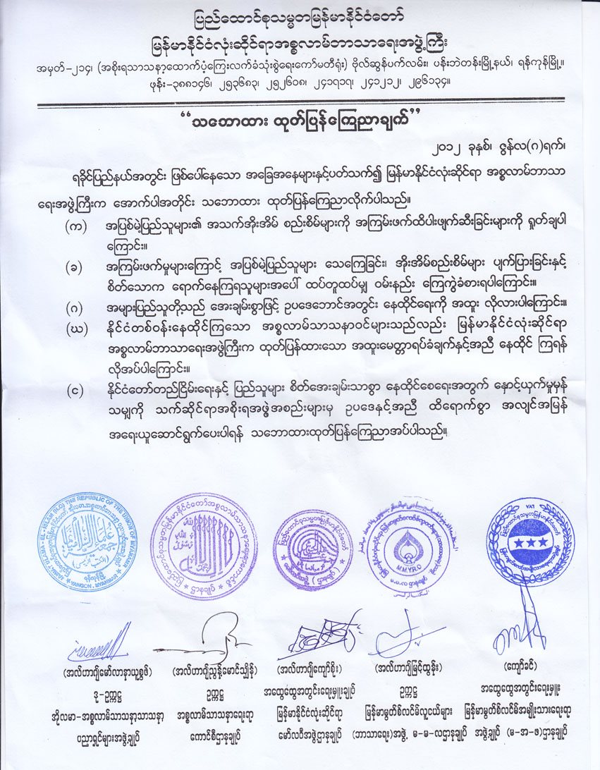 ပဋိပကၡမ်ားအတြက္ ရခိုင္၊ မြတ္စလင္၊ တုိင္းရင္းသားလူငယ္၊ ၈၈ တို႔ရဲ႕ ေၾကညာခ်က္