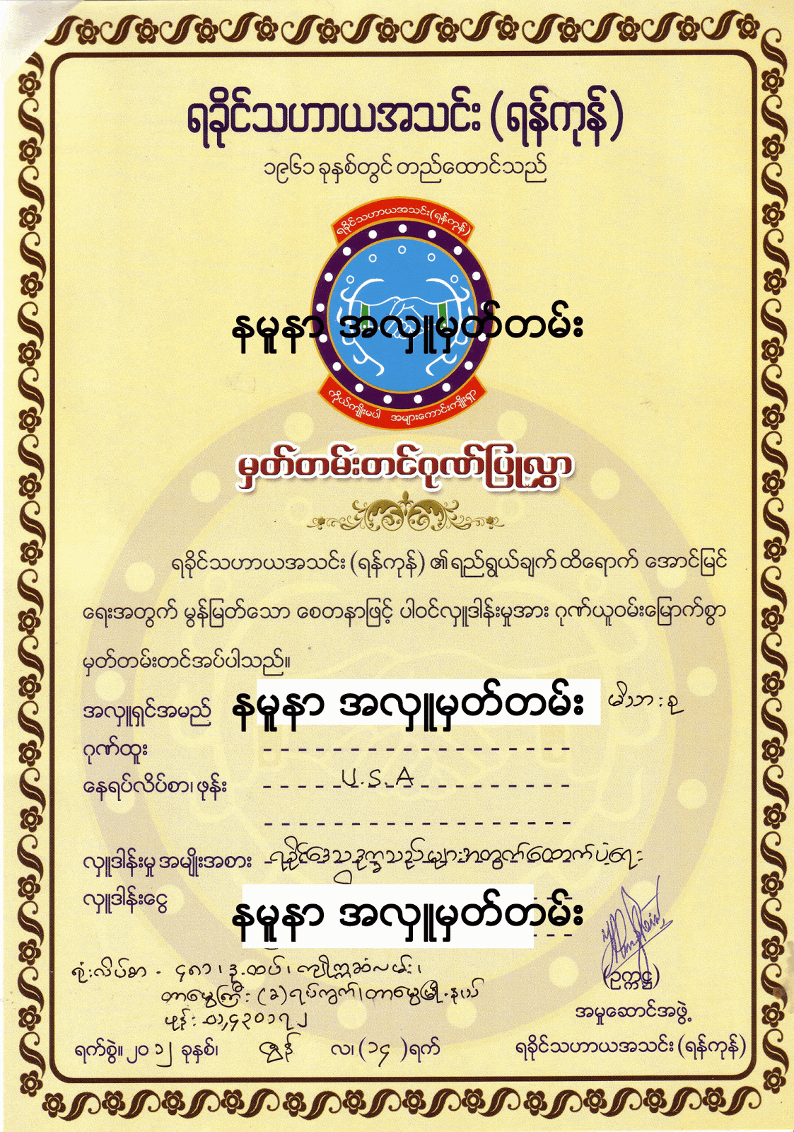 လက္ရွိတြင္ အသင္းၾကီးတည္ရွိရာ အမွတ္ ၄၈၁၊ ဒုတိယထပ္၊ က်ဳိကၠဆံလမ္း၊ တာေမြၾကီး (ခ) ရပ္ကြက္၊ တာေမြျမိဳ႔နယ္၊ ဖုံး (၀၁) ၄၃၀၁၇၂ သို႔ လာေရာက္ဆက္သြယ္လွဴဒါန္းႏိုင္သည္ဟု ဆိုသည္။ အလွဴရွင္မ်ားအတြက္ ေဖာ္ျပပါ မွတ္တမ္းတင္ဂုဏ္ျပဳလႊာကို ေပးအပ္လွ်က္ရွိေၾကာင္း၊ ရပ္နီး ရပ္ေ၀းမွ အလွဴေငြမ်ား ေပးပို႔ျခင္း၊ အစားအေသာက္၊ အ၀တ္အစား၊ ကေလးကစားစရာ စသည့္ အကူအညီ ပစၥည္းမ်ားကိုလည္း လက္ခံေပးေနေၾကာင္း၊ ေငြေၾကးႏွင့္ စားေရ ရိကၡာမ်ားကို ဦးစားေပး တင္ပို႔ျပီး က်န္ အကူပစၥည္းမ်ားကို ကားလမ္းမ်ား အမွန္တကယ္ ဖြင့္ေပးပါက ေပးပို႔မည္ ျဖစ္ေၾကာင္း သိရွိရသည္။