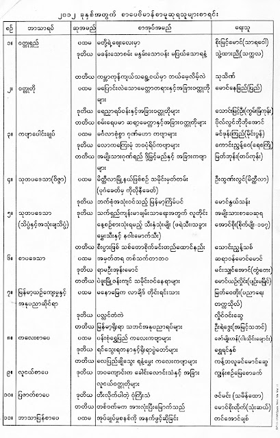 ၂၀၁၂ ခုုႏွစ္အတြက္ စာေပဗိမာန္စာမူဆုု ရရွိသူမ်ားစာရင္း