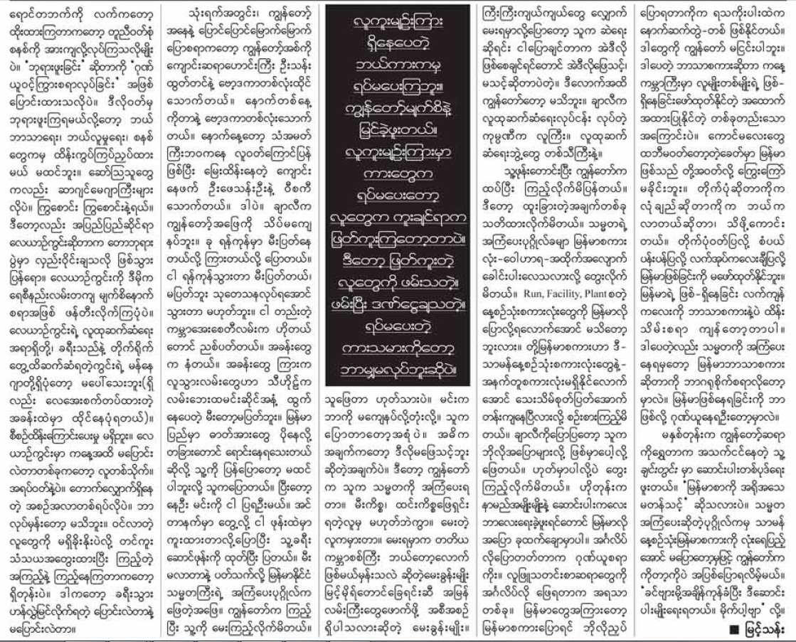 ဖတ္သင့္တ့ဲေဆာင္းပါးထဲမွာ ဒီတပုဒ္လည္း ပါပါတယ္လုိ႔ ညႊန္းလုိပါတယ္။