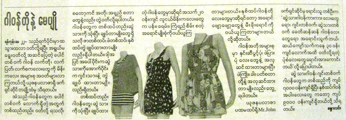 ေပါင္တ၀က္ဂါ၀န္မ်ားကုိ ပ်ဳိပ်ဳိေမတုိ႔ အပါအ၀င္ အရြယ္စုံ အမ်ဳိးသမီးေတြ ဘယ္လုိ ၀တ္ၾကသလဲ ဆုိတာကုိ ဒီ ဖက္ရွင္သတင္းေလးမွာ ေရးထားပါတယ္။ ဘာအေရာင္ ဘာအဆင္ေတြ အ၀တ္မ်ားသလဲ ဆုိတာလည္း ေရးထားပါတယ္။