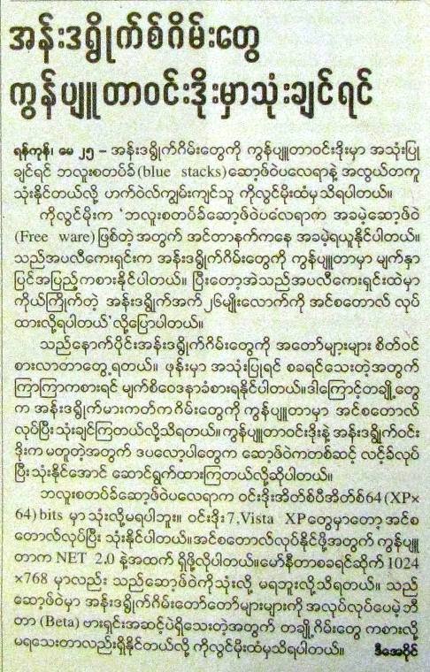 အခု အညႊန္းေတြကုိ ဖတ္ဖုိ႔အတြက္ ေခါင္းစဥ္မ်ားကုိသာ ကလစ္ပါခင္ဗ်ာ။