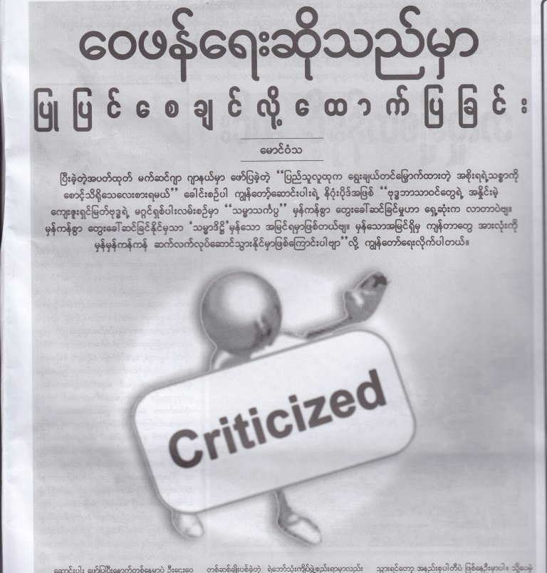 ေ၀ဖန္ေရးဆုိသည္မွာ ျပဳျပင္ေစခ်င္လုိ႔ ေထာက္ျပျခင္း