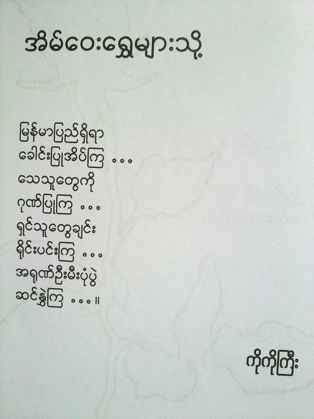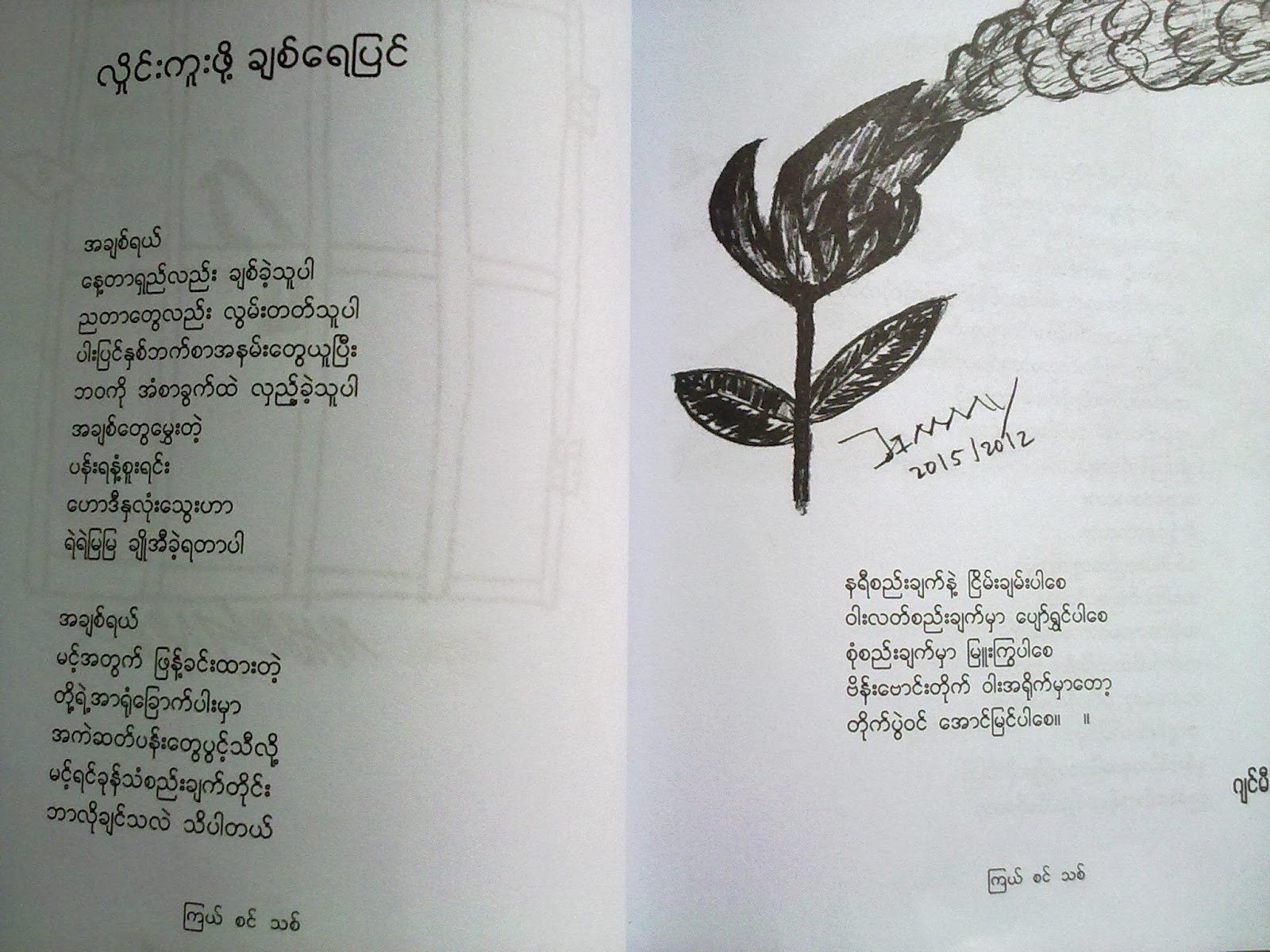 One thought on “Poems Book – ၈၈ မ်ဳိးဆက္ေက်ာင္းသားေတြနဲ႔ ကဗ်ာဆရာေတြရဲ့ ငါတိုု႔အိပ္မက္ကဗ်ာေတြ စာအုုပ္ထြက္