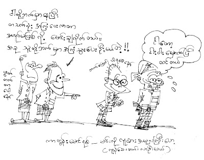 ဒီဖက္မွာတုန္းကလဲ ကိုယ္႕ဘာသာကိုယ္ခန္႕ထားတဲ႕ အႀကံေပးေတြပါဗ်ာ..ဒီဖက္ေရာက္ကတည္းက ၈၈ကထြက္လာတဲ႕ အသီးအပြင္႕ေတြၿဖစ္တဲ႕ စေကာ္လားရွစ္ရေအာင္ေတာင္း..ေရဒီယိုေတြမွာအလုပ္ရဖို႕ ဖားက်..စမန္ခုတ္က်..တိုက္က်..ၿပီးမွ သိန္းစိန္အႀကံေပးၿဖစ္သြားတာ..:-)