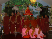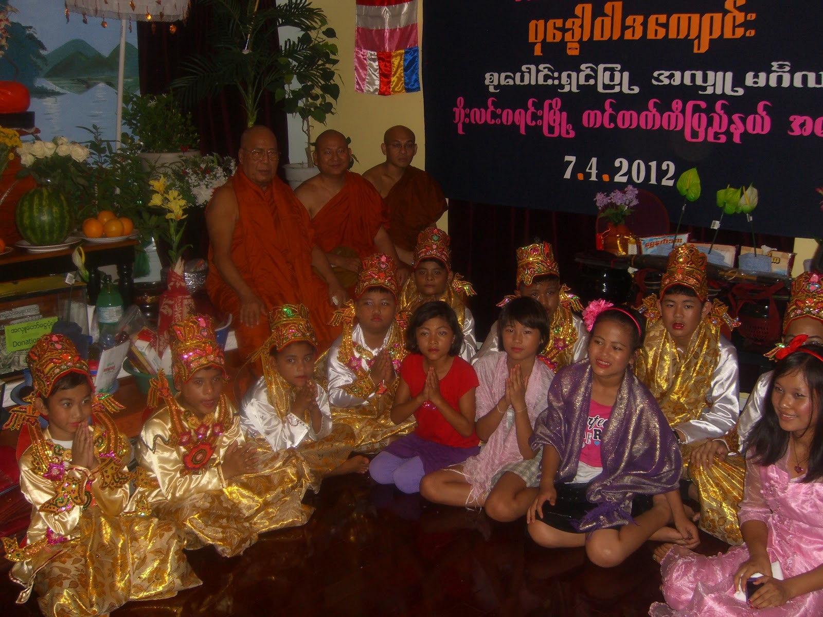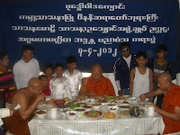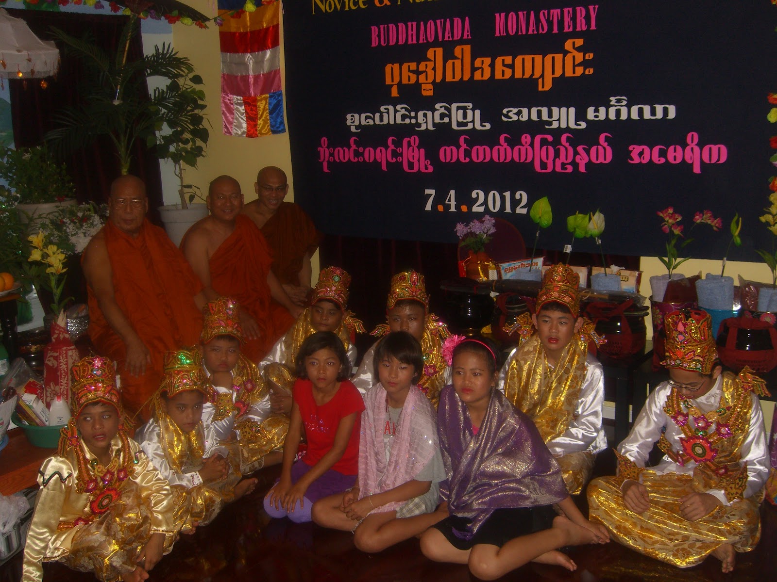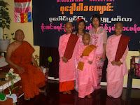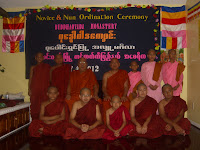 ေန႔လည္ (၃) နာရီမွာ သကၤန္းေတာင္းဆုိကာ ရွင္ျပဳျခင္းမဂၤလာႏွင့္ သီလရွင္၀တ္ျခင္း မဂၤလာကုိ ေက်ာင္းထုိင္ဆရာေတာ္ႏွင့္ နက္ရွဘီး ျမန္မာေက်ာင္းဆရာေတာ္ ဦးက၀ိႏၵမွ ကုိရင္ သာမေဏအျဖစ္သုိ. ခ်ီးေျမာက္ေပးခဲ့ပါတယ္၊၊