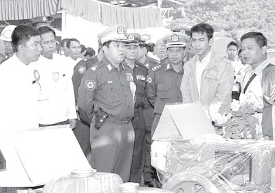 ၂၀၀၉ ဇန္န၀ါရီလက ျပပဲြတစ္ခုတြင္ ေတြ႔ရေသာ ေနျပည္ေတာ္တုိင္းမွဴး ဗုိလ္ခ်ဳပ္ ေ၀လြင္ ႏွင့္ အရာရိွမ်ား