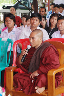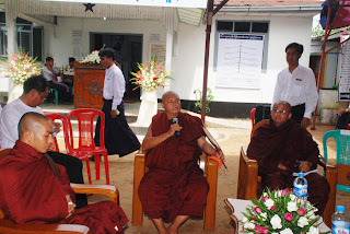 ထို႔ေနာက္ ပဲခူးတုိင္းေဒသႀကီး အေထြေထြေရာဂါကုေဆး႐ံုႀကီး ပဲခူးၿမိဳ႕မွ ေဆး႐ံုအုပ္ ေဒါက္တာ နီနီေအး မွ အမွာစကားေျပာၾကားရာတြင္ ေရာဂါေဝဒနာ႐ွင္မ်ားအား ကုသေပးရင္းႏွင့္ တၿပိဳင္နက္တည္း ထိုေရာဂါအသီးသီးတို႔အား မျဖစ္ပြားေအာင္ ကာကြယ္နည္း၊ ဂ႐ုစိုက္နည္း ပညာေပးမႈမ်ားကို ျပဳလုပ္သြားပါက အမ်ားျပည္သူတို႔၏ က်န္းမာေရးအတြက္ ပိုမိုထိေရာက္မည္ျဖစ္ ေၾကာင္းဟူ၍ အဖိုးတန္စကားရပ္အား ခ်ီးျမႇင့္ေျပာၾကားခဲ့သည္။ ထုိ႔ေနာက္ သုခကုသုိလ္ျဖစ္ေဆးခန္း (ပဲခူး)အတြက္ လွဴဒါန္းထားေသာ အလွဴ႐ွင္မ်ားအား ဂုဏ္ျပဳလႊာမ်ား ျပန္လည္ေပးအပ္ျခင္း အခမ္းအနား က်င္းပျပဳလုပ္ၿပီးေနာက္ နာေရးကူညီမႈအသင္း(ရန္ကုန္) အတြင္းေရးမွဴး ေဒၚေ႐ႊဇီးကြက္မွ ေက်းဇူးတင္စကားေျပာၾကားရာတြင္ ျမတ္စြာဘုရား႐ွင္လက္ထက္၌ ရဟႏၲာတစ္ပါး၏ျဖစ္ရပ္အား သာဓကအျဖစ္ ေျပာၾကားခဲ့ရာ တစ္ပါးသူအား မနာလိုဝန္တုိစိတ္ျဖင့္ ျပဳလုပ္ခဲ့ေသာ ဝဋ္ေႂကြးေၾကာင့္ ဘဝတိုင္း ဘဝတိုင္း အပယ္ဘံုသို႔က်ေရာက္ခဲ့ၿပီးေနာက္ လူ႔ဘဝသို႔ ျပန္လည္ေရာက္႐ွိခ်ိန္တြင္လည္း ထုိသူ၏ အကုသိုလ္ အက်ဳိးဆက္သည္ သူ၏ အနီးအနား ပတ္ဝန္းက်င္တြင္႐ွိေသာ အိမ္ေျခတစ္ေထာင္ခန္႔အထိ ႐ိုက္ခတ္ျခင္းကို ခံခဲ့ရသည္။