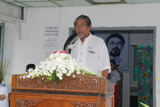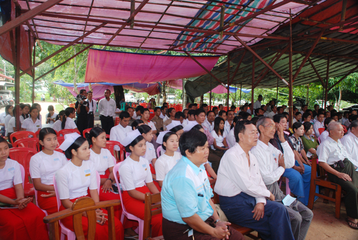 အခမ္းအနားတြင္ နာေရးကူညီမႈအသင္း(ရန္ကုန္) ဥကၠ႒ ဦးေက်ာ္သူႏွင့္ ပဲခူးတုိင္းေဒသႀကီး အေထြေထြေရာဂါကုေဆး႐ံုႀကီး ပဲခူးၿမိဳ႕မွ ေဆး႐ံုအုပ္ ေဒါက္တာ နီနီေအး တို႔မွ ဖဲႀကိဳးျဖတ္ ဖြင့္လွစ္ေပးခဲ့သည္။ ဥကၠ႒ ဦးေက်ာ္သူမွ အဖြင့္အမွာစကားေျပာၾကားရာတြင္ အမ်ားျပည္သူတုိ႔၏ က်န္းမာေရးအား ယခုကဲ့သို႔ ဝိုင္းဝန္းကူညီ လွဴဒါန္းကုသမႈမ်ား ျပဳလုပ္ေပးၾကေသာ အလွဴ႐ွင္မ်ား ရပ္မိရပ္ဖမ်ား၊ ဆရာဝန္ႀကီးမ်ားအား အထူးေက်းဇူးတင္႐ွိေၾကာင္း၊ ဇြန္ပန္း႐ံုေအာက္တြင္ လွည္းဘီးနစ္ေနသည္။ ကူ၍တြန္းၾကပါ ဟု ဆိုစကား႐ွိေသာ္လည္း ဘက္ေပါင္းစံုမွ ဝိုင္းဝန္းတြန္းၾကပါက လွည္းဘီးသည္ နစ္သည္ထက္ နစ္မည္ျဖစ္ေၾကာင္း၊ ထုိ႔ေၾကာင့္ ဦးတည္ခ်က္၊ ရည္႐ြယ္ခ်က္လားရာ တစ္ဖက္တည္းသို႔ ဝိုင္းဝန္းညီၫြတ္စြာ တြန္းၾကပါမွ မိမိတို႔ လုိရာပန္းတိုင္သို႔ ေရာက္မည္ျဖစ္ေၾကာင္း ႂကြေရာက္လာၾကေသာ လူမႈေရးအသင္းအဖြဲ႔မ်ားအား အမွာစကားေျပာၾကားခဲ့သည္။