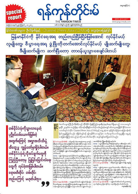 CNA – ကၽြန္မတို႔အေနနဲ႔ အခုလိုႏိုင္ငံေတာ္သမၼတႀကီးနဲ႔ ေတြ႕ဆံုေမးျမန္းခြင့္ရတဲ့အတြက္ ေက်းဇူးအမ်ားႀကီးတင္ပါတယ္။ ကၽြန္မတို႔ ဃၿဗသတင္းဌာနအေနနဲ႔ ျမန္မာႏိုင္ငံကသတင္းမ်ားကို ရယူထုတ္လႊင့္လ်က္ရိွပါတယ္။ ဒီႏွစ္အတြင္းမွာ ဃၿဗသတင္းဌာနအေနနဲ႔ ကၽြန္မအပါအ၀င္ စင္ကာပူတို႔၊ ဘန္ေကာက္အေျခစိုက္တို႔က သတင္းသမားေတြက ျမန္မာႏိုင္ငံသို႔သြားေရာက္ၿပီးေတာ့ သတင္းရယူႏိုင္ခဲ့ပါတယ္။ ဒါေၾကာင့္ ကၽြန္မတို႔အေနနဲ႔ ျမန္မာႏိုင္ငံမွာ ျပဳျပင္ေျပာင္းလဲေရးလုပ္ ငန္းစဥ္ အထူးသျဖင့္ ႏိုင္ငံေတာ္သမၼတႀကီးတို႔လို ျပည္သူေတြနဲ႔ တုိက္႐ိုက္ထိေတြ႕ၿပီး ျပဳျပင္ေျပာင္းလဲမႈလုပ္ငန္းစဥ္ေတြကို တိုက္႐ိုက္ထိေတြ႕ၿပီး သတင္းရယူထုတ္လႊင့္ႏိုင္တဲ့အတြက္ေၾကာင့္မိုလို႔ ကၽြန္မတို႔မ်ားစြာ၀မ္းေျမာက္ဂုဏ္ယူမိပါတယ္။