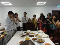 အခမ္းအနားသို႔ Frankfurt ၿမိဳ့ ျမန္မာဗုဒၶဘာသာ ဘုန္းေတာ္ႀကီးေက်ာင္းမွ သံဃာေတာ္မ်ားႏွင့္ နယ္သာလန္ႏိုင္ငံ ေမတၱာဓမၼဝိဟာရေက်ာင္းမွ ဆရာေတာ္ဦးဇဝန တို႔ၾကြေရာက္ေတာ္မူၾကသည္။ အခမ္းအနားကို ေန႔လည္ ၁၁နာရီ အခ်ိန္တြင္ စတင္ကာဆရာေတာ္သံဃာေတာ္မ်ားကဦးေဆာင္ၿပီး ဧည့္ပရိသတ္ အေပါင္းတို႔က ျမတ္စြာဘုရားအား ဆြမ္း၊ပန္း၊ေရခ်မ္း ကပ္လွဴျခင္း၊ (၇)ေန႔ ဘုရားရွိခိုးတို႔ျဖင့္ ရွိခိုးပူေဇာ္ျခင္းမ်ားကို ညီညာစြာ ရွိခိုးပူေဇာ္ၾကသည္။ ထိုေနာက္ သံဃာေတာ္ တို႔အားဆြမ္းဆက္ကပ္ၾကၿပီး ထိုသို႔သံဃာေတာ္မ်ား ဆြမ္းဆက္ကပ္ စဥ္ ပရိသတ္အေပါင္းတို႔မွ ဓမၼစၾကာပါဠိေတာ္ကို ညီညီညာညာ ရြတ္ဖတ္ ပူေဇာ္ၾကသည္။