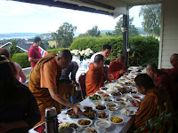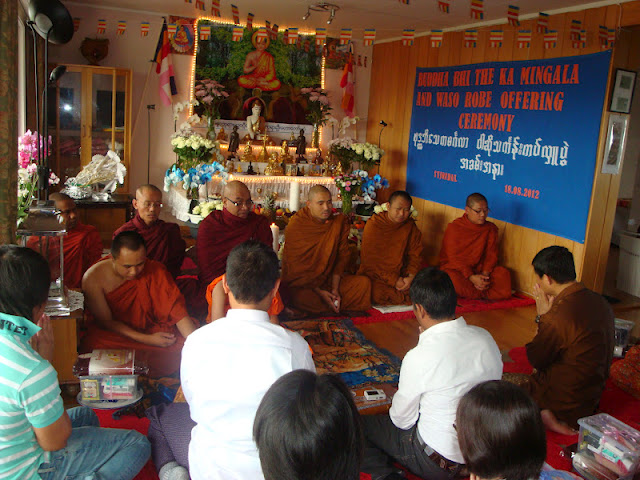 ထိုေက်ာင္းသစ္ဖြင့္ပြဲ အႀကိဳည ျဖစ္ေသာ ၁၇-၈-၂၀၁၂ ညေနက ေရွာ္ဒယ္ၿမိဳ႕ ထရန္ဟိုင္းၿမိဳ႕႔တိုမွ ဓမၼစၾကာအဖြဲ႔ အမ်ိဳး သမီးမ်ား၊ဆီြဒင္ႏိုင္ငံျမန္မာဗုဒၶဘာသာအသင္းမွ ေယာဂီမ်ားက စုေပါင္းၿပီး ဓမၼစၾကာႏွင့္ ေမတၱာပို႔ တိုကိုစုေပါင္းရြတ္ဆို၍ ျမတ္စြာဘုရားအား ပူေဇာ္ၾကသည္။ ေနာက္တေန႔မနက္၁၈- ၈- ၂၀၁၂ ေန႔တြင္ နယ္သာလန္ႏိုင္ငံ ဆီြဒင္ႏိုင္ငံတို႔ႏွင္႕ ေနာ္ေဝႏိုင္ငံ ထရန္ဟိုင္း-ေအာ္စလိုၿမိဳ႕မွ ၾကြေရာက္လာေသာပင့္ သံဃာေတာ္တို႔ကို အရုဏ္ဆြမ္းဆက္ကပ္လွဴဒါန္းၾကသည္။