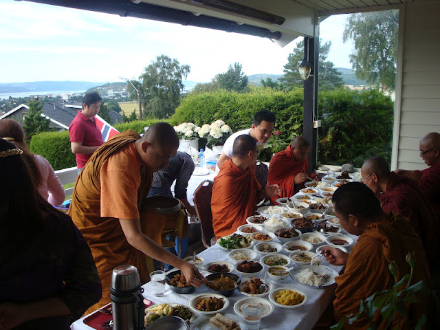 နံနက္ ၉း၄၅မိနစ္တြင္ ေက်ာင္းတိုက္အတြင္ ပူေဇာ္ထားရွိေသာ ဗုဒၶ ရုပ္ပြားေတာ္ကို သံဃာေတာ္ တို႔မွ အေနကဇာတင္ျခင္း ဗုဒၶါဘိေသက မဂၤလာအခမ္းနားကိုျပဳလုပ္ၾကသည္။ အခမ္းအနားအျပီးတြင္ ဆြီဒင္ နိုင္ငံ ၾတိရတန ေက်ာင္းမွဆရာေတာ္ ဦးနႏၵသာရႏွင့္ ေနာ္ေဝႏိုင္ငံ ေအာ္စလိုျမိဳ႕မွ ဆရာေတာ္ ဦးဝိသုဒၶတို႔ ၾသဝါဒ စကားမ်ား ျမြက္ၾကားေတာ္မူၾကျပီး နယ္သာလန္ႏိုင္ငံ ေမတၱာဓမၼဝိဟာရေက်ာင္းဆရာေတာ္ထံမွ ငါးပါးသီလ သရဏဂံုတို႔ေဆာက္တည္ၾကျပီး ဝါဆိုသကၤန္းတို႔ကို စုေပါင္းကပ္လွဴၾကသည္။ ထိုဝါဆိုသကၤန္းကပ္လွဴပြဲသို႔ ေနာ္ေဝ နိုင္ငံ ေရွာ္ဒယ္ျမိဳ႕၊ ထရန္ဟိုင္းျမိဳ႔႕၊ခရစ္စယန္စြန္းျမိဳ႕ႏွင့္ ဆြီဒင္ႏိုင္ငံတို႔မွ ဒကာ ဒကာမမ်ားက ကပ္လွဴၾကျခင္း ျဖစ္သည္။ဝါဆိုသကၤန္းကပ္လွဴအျပီး အနဳေမာဒနာ တရာကို နယ္သာလန္ႏိုင္ငံ ေမတၱာဓမၼဝိဟာရေက်ာင္းဆရာေတာ္ ဦးဇဝနမွ ေဟာၾကားေတာ္မူသည္။