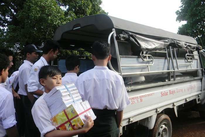 နာေရးကူညီမွဳအသင္း (ရန္ကုန္) ၏ (၄) ႀကိမ္ေျမာက္ ရခိုင္ျပည္နယ္ရွိ ဒုကၡသည္ႀကံဳေတြ႔ေနရေသာအခက္အခဲမ်ားကို ကူညီေဖးမမႈေျခလွမ္း အျဖစ္ ဥကၠ႒ ဦးေက်ာ္သူႏွင့္အဖြဲ႔သည္ ရခိုင္ျပည္နယ္ စစ္ေတြၿမိဳ႕သို႔ ၂၄.၈.၂ဝ၁၂ ရက္ေန႔တြင္ သြားေရာက္ၾကမည္ျဖစ္သည္။ နာေရးကူညီမႈ အသင္း (ရန္ကုန္) ၏ ေ႐ွ႕ေျပးအဖြဲ႔သည္ ၂၂.၈.၂ဝ၁၂ ရက္ေန႔တြင္ စစ္ေတြၿမိဳ႕သို႔ေရာက္ရွိၿပီး ဒုကၡသည္မ်ားအား ကူညီေဖးမရန္အတြက္ စားနပ္ရိကၡာမ်ား၊ အဝတ္အထည္မ်ားႏွင့္ လူသံုးကုန္ပစၥည္းမ်ားကို ႀကိဳတင္စီစဥ္ၿပီးျဖစ္ေနေလသည္။ ဥကၠ႒ ဦးေက်ာ္သူႏွင့္အဖြဲ႔သည္ ၂၂. ၈.၂ဝ၁၂ ရက္ေန႔တြင္ ႀကိဳတင္ေရာက္႐ွိေနေသာ္ ေ႐ွ႕ေျပးအဖြဲ႔ႏွင့္ ပူးေပါင္းကာ ဒုကၡသည္ကယ္ဆယ္ေရးစခန္းမ်ားသို႔ ကိုယ္တိုင္ကိုယ္က် သြားေရာက္ကာ ကူညီေဖးမၾကမည္ ျဖစ္သည္။