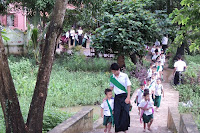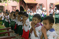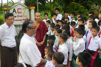 ဥကၠ႒ ဦးေက်ာ္သူသည္ ၂၉.၈.၂ဝ၁၂ ရက္ေန႔တြင္လည္း ျပည္ပႏိုင္ငံသို႔ သြားေရာက္ရမည္ျဖစ္ သည္။ ျပည္ပႏိုင္ငံသို႔သြားေရာက္ရန္ ျပင္ ဆင္ရျခင္း၊ ရခိုင္ျပည္႐ွိ ဒုကၡသည္မ်ားထံသို႔ သြားေရာက္ကူညီျခင္းႏွင့္ နာေရးကူညီမႈအသင္း (ရန္ကုန္) ၏ လုပ္ငန္းတာဝန္မ်ား မအား လပ္သည့္ၾကားမွ ၂၃.၈.၂ဝ၁၂ ရက္ ေန႔ နံနက္ (၆းဝဝ) နာရီအခ်ိန္တြင္ လူမႈေရးလက္တြဲေဖာ္ အသင္းသား/သူမ်ားႏွင့္အတူ တိုက္ႀကီး ၿမိဳ႕ နယ္၊ တာခြတာဆံုအနီး႐ွိ “ေအးခ်မ္းသာ” လူငယ္ဖြံ႔ၿဖိဳးေရး ပရဟိတေက်ာင္းသို႔ သြားေရာက္ခဲ့ၾကသည္။ တာခြလမ္းဆံုမွ သရက္ေခ်ာင္း လမ္းအတိုင္း အနည္းငယ္ဝင္လိုက္သည္ႏွင့္ “ေအးခ်မ္းသာ” ပရဟိတလူငယ္ ဖြံ႔ၿဖိဳးေရးေက်ာင္းအား လယ္ကြင္းစိမ္းစိမ္းေတြၾကား ထင္႐ွားစြာ ေတြ႔ျမင္ရေတာ့သည္။ ေက်ာင္းထဲသို႔ ဝင္လုိက္သည္ႏွင့္ အနာဂါတ္ႏိုင္ငံေတာ္ကို ဦးေဆာင္ၾကေတာ့ျမည့္ အနာဂါတ္၏ သားေကာင္း၊ သမီး ေကာင္းရတနာမ်ားတို႔၏ ေမတၱာပို႔သံ၊ ကဗ်ာ႐ြတ္သံတို႔သည္ ေလာကဓံကိုရင္ဆိုင္ရန္ အသင့္အေနအထားႏွင့္ တိုက္ပြဲေခၚသံအလား ႀကံဳးဝါးေနၾကသည္ဟု ထင္မွတ္၍ အ့ံၾသမွင္သက္ေနမိေတာ့သည္။ အနာဂတ္ကို ပိုင္စိုးၾကမည့္ ေက်ာင္းသားလူငယ္မ်ား၏ စည္းလံုးညီၫႊတ္မႈ၊ စည္းကမ္းျပည့္ဝမႈ၊ ဝတ္စား ဆင္ယဥ္မႈတို႔သည္ ဒီမုိကေရစီႏိုင္ငံေတာ္အတြက္ ဂုဏ္ယူစရာ၊ လူမႈေရးအသင္းအဖြဲ႔မ်ား၊ ႏိုင္ငံေရးပါတီ မ်ားအတြက္ အတုယူစရာ “စည္းကမ္းဟူသည္ လူ၏တန္ဖိုး” ဟူေသာ ကြၽန္ေတာ္တို႔ ငယ္စဥ္ကပင္ရင္းႏွီးခဲ့သည့္ ထိုစာသားေလး၏ အဓိပၸါယ္အားေပၚလြင္ေစရန္ ထင္ဟပ္ေပးေနသလိုပင္ ခံစားမိေတာ့သည္။