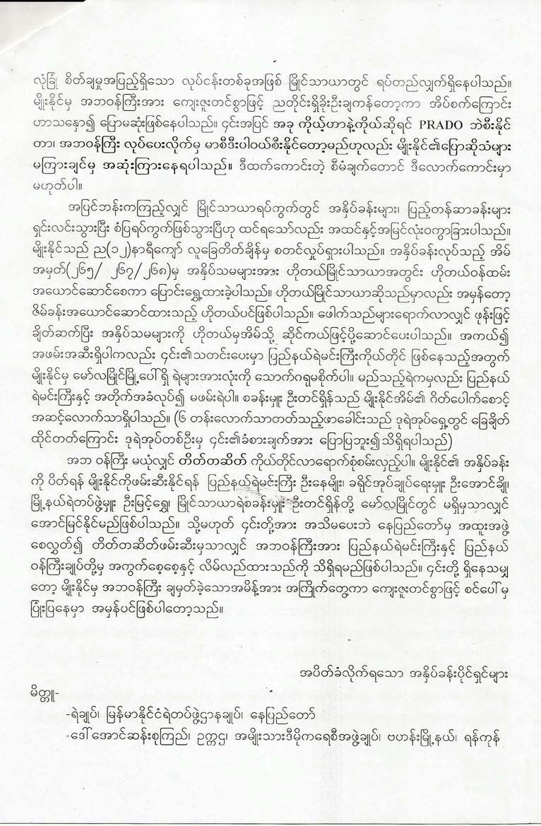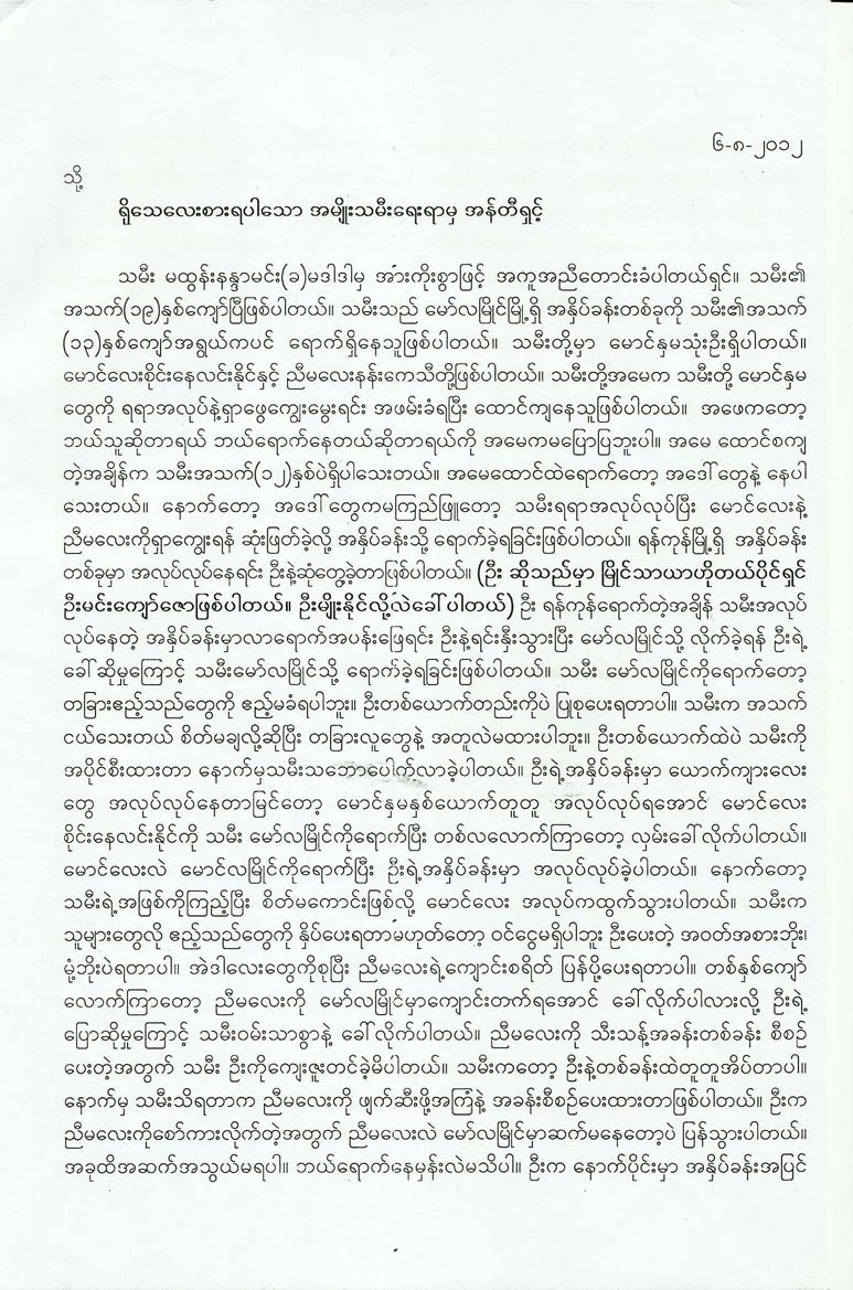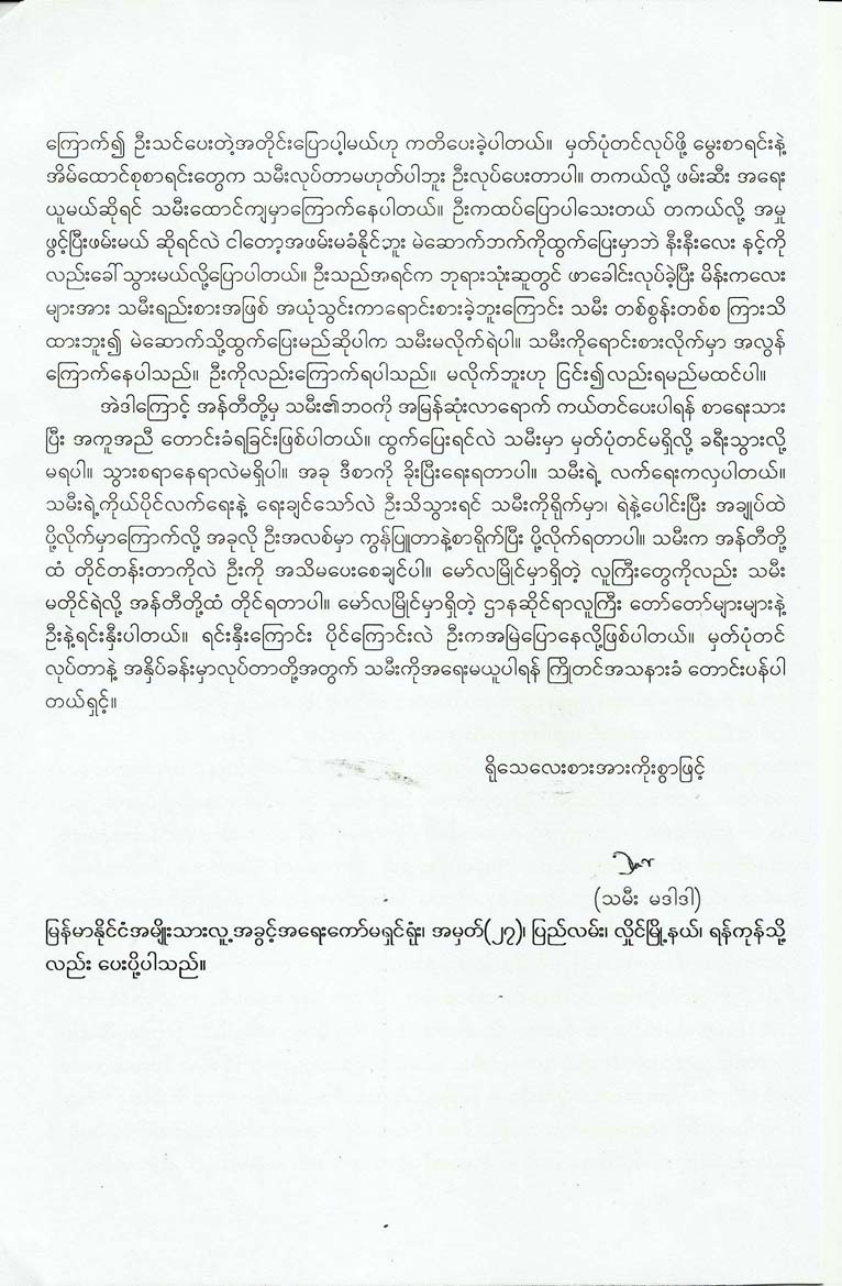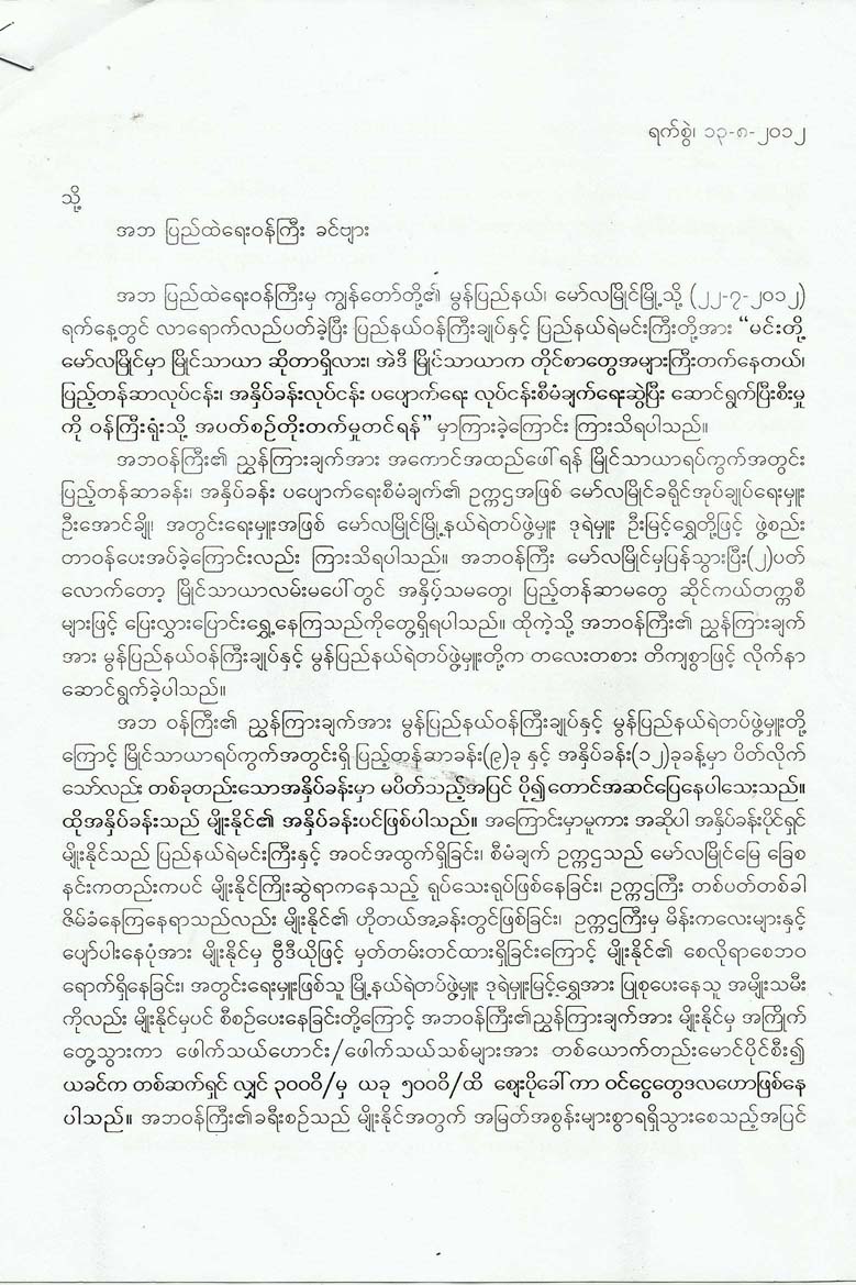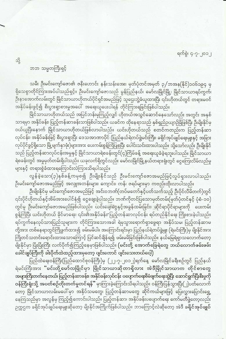 မိုးမခထံေပးစာ၊ ၾသဂုတ္ ၂၈၊ ၂၀၁၂