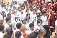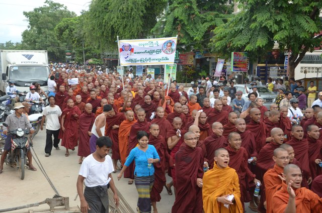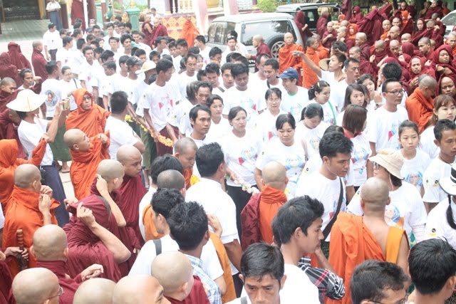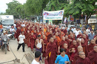 အင္အားတစ္ရာသာ တရားဝင္ ဆႏၵျပခြင့္ရခဲ့ေပမယ့္ ေနာက္မွလုိက္လံအားေပးျခင္း၊ လမ္းေဘးဝဲယာမွ ရပ္ၾကည့္အားေပးၾကျခင္းမ်ား ျပဳ လုပ္ၾကေသာေၾကာင့္ ရဟန္းသံဃာမ်ား၊ ျပည္သူလူထုမ်ားျဖင့္ စည္ကားသိုက္ၿမိဳက္သြားျခင္းျဖစ္ပါတယ္။
