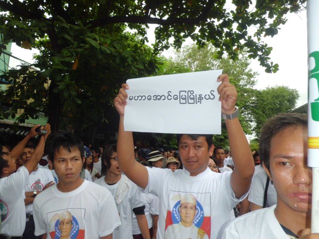 ရခိုင္အေရးအခင္းနဲ႔ ပတ္သက္ၿပီး ႏုိင္ငံေတာ္သမၼတႀကီး ဦးသိန္းစိန္၏ ရပ္တည္ခ်က္ကိုေထာက္ခံၿပီး မစၥတာကင္တားနားကို ကန္႔ကြက္႐ႈတ္ခ် သည့္ ဆႏၵေဖာ္ထုတ္ပဲြကို ယေန႔ (၂.၉.၂၀၁၂) တနဂၤေႏြေန႔တြင္ မႏၲေလးၿမိဳ႕၊ မဟာေအာင္ေျမၿမိဳ႕နယ္၊ ေအာင္ေျမသာဇံၿမိဳ႕နယ္တို႔၌ စည္ ကားသိုက္ၿမိဳက္စြာက်င္းပႏုိင္ခဲ့ေၾကာင္း သိရပါတယ္။