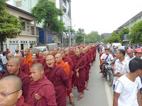 ယေန႔ သံဃာထုလႈပ္ရွားမႈကို ဒုတိယေရႊဝါေရာင္အခမ္းအနားဟု ကင္ပြန္းတပ္ေနၾကေၾကာင္းပါခင္ဗ်ာ။