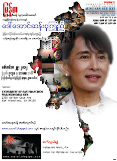 အမ်ဳိးသားဒီမိုကေရစီအဖြဲ႔ခ်ဳပ္ ဥကၠ႒ ကမာၻ႔ၿငိမ္းခ်မ္းေရးႏိုဘယ္ဆုရွင္ ေဒၚေအာင္ဆန္းစုၾကည္ႏွင့္ ဆန္ဖရန္စစၥကို (ေဘးဧရိယာ) ျမန္မာမိသားစုမ်ား ေတြ႔ဆံုပြဲကို စက္တင္ဘာလ ၂၉ ရက္ေန႔တြင္ 2335 Golden Gate Avenue, San Francisco, CA 94118 ရွိ University of San Francisco – War Memorial Gym၌ နံနက္ ၉း၃၀ နာရီမွ ၁၁း၀၀ နာရီအထိ က်င္းပမည္ျဖစ္ပါသည္။