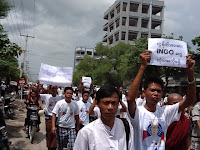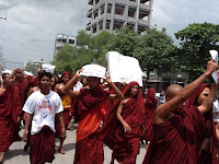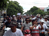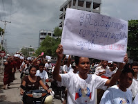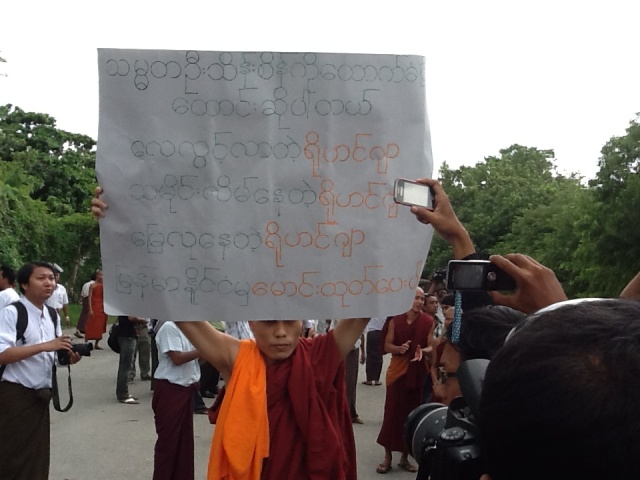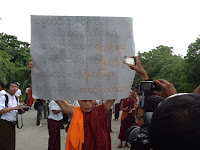 ရခုိင္အေရးအခင္းႏွင့္ပတ္သက္ၿပီး သမၼတႀကီးဦးသိန္းစိန္၏ရပ္တည္ခ်က္ကိုေထာက္ခံၿပီး မစၥတာကင္တားနားကို ကန္႔ကြက္သည့္ ဆႏၵေဖာ္ ထုတ္ပဲြ တတိယေန႔ကို ယေန႔ (၄.၉.၂၀၁၂) ရက္ေန႔ မြန္းတည့္ (၁၂) နာရီမွာ ဆက္လက္ဆင္ႏႊဲႏုိင္ခဲ့ေၾကာင္းသိရပါတယ္။