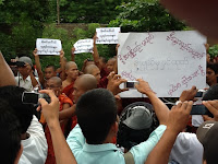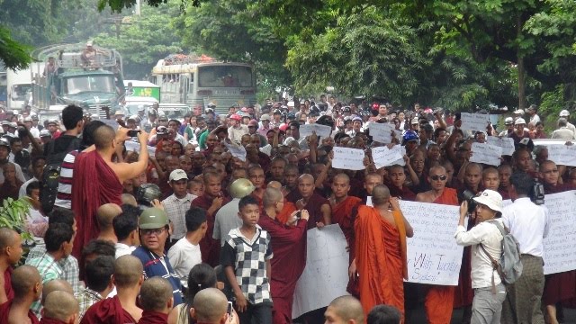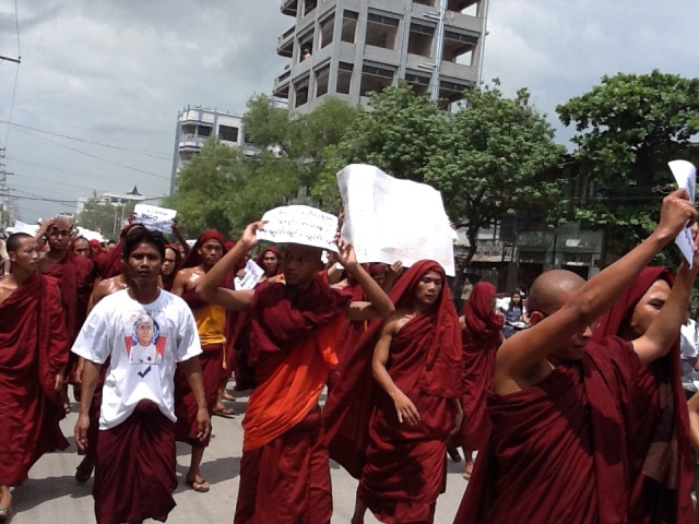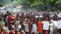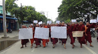 ဆႏၵျပပဲြမစခင္မွာ ၿမိဳ႕နယ္သံဃနာယက ဆရာေတာ္ႀကီးမ်ားက လာေရာက္ဟန္႔တားေသးခဲ့ေၾကာင္းလည္း သိရပါတယ္။