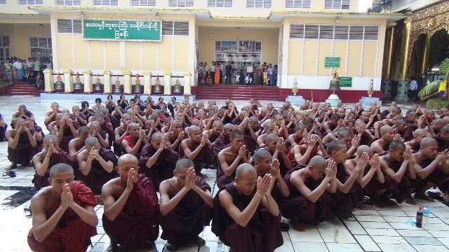 အင္အားငါးရာခန္႔ရွိေသာ သံဃာထုႀကီးသည္ ဆုိင္းဘုတ္မ်ားကိုင္ေဆာင္ၿပီး ျမေတာင္ေက်ာင္းတုိက္မွ စတင္ခ်ီတက္ကာ ၈၄ လမ္း (ဗိုလ္ခ်ဳပ္ လမ္းမႀကီး) အတုိင္း ေစ်းခ်ဳိဘက္ကိုခ်ီတက္သြားၾကပါတယ္။