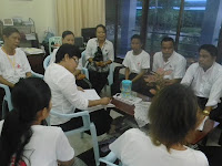 ၁.၉.၂ဝ၁၂ ရက္ေန႔ နံနက္ (၁ဝးဝဝ) နာရီအခ်ိန္တြင္ ဒဂံုဆိပ္ကမ္းၿမိဳ႕နယ္၊ (၉၄) ရပ္ကြက္၊ ယုဇနဥယ်ာဥ္ၿမိဳ႕ေတာ္ရွိ “ထိန္လင္းကုသိုလ္ျဖစ္ ေဆးခန္း” သို႔ နာေရးကူညီမႈအသင္း (ရန္ကုန္) မွ အလုပ္မႈေဆာင္ ဦးၿဖိဳးကိုကို၊ သုခကုသိုလ္ျဖစ္ေဆးခန္းမွ တာဝန္ခံ ေဒၚမိုးမိုးၾကည္ႏွင့္ အသင္းသား ဦးေဇာ္စိုင္းတို႔သည္ ေဆးခန္းႏွင့္ပတ္သက္သည့္ လုပ္ငန္းစဥ္မ်ားအား ေမးျမန္းမႈျပဳလုပ္ခဲ့ၾကၿပီး ကူညီမႈေထာက္ပံ့မႈ ျပဳလုပ္ေပး ႏိုင္ရန္ ေလ့လာခဲ့ၾကသည္။ ယင္းေဆးခန္းသည္ တစ္ပတ္လွ်င္ (ဗုဒၶဟူး၊ စေန) ေန႔မ်ားတြင္ဖြင့္လွစ္ခဲ့ၿပီး တစ္ေန႔လူနာ (၅ဝ) ဦးခန္႔အား ဆရာဝန္ (၃) ဦးတို႔မွ ကုသေဆာင္ရြက္ေပးလွ်က္ရွိသည္။ ေဆးဝါး တစ္ေန႔တာ ငါးေသာင္းက်ပ္ခန္႔ကုန္က်လွ်က္ရွိၿပီး တစ္လလွ်င္ ေလး သိန္းက်ပ္ခန္႔ ကုန္က်ေနေၾကာင္းသိရသည္။ တစ္ပတ္လွ်င္ (၃) ရက္ႏႈန္းတုိးျမႇင့္၍ ေဆးဝါးကုသမႈျပဳလုပ္ႏိုင္ရန္အတြက္ ႀကိဳးပမ္းအားထုတ္ ေနၾကေၾကာင္း သိ႐ွိရသည္။ “ထိန္လင္းကုသိုလ္ျဖစ္ေဆးခန္း” ၏ တာဝန္ရွိသူမ်ားသည္ ၂ဝ.၈.၂ဝ၁၂ ရက္ေန႔၌ နာေရးကူညီမႈအသင္း (ရန္ ကုန္) သို႔လာေရာက္၍ အတြင္းေရးမွဴး ေဒၚေ႐ႊဇီးကြက္ႏွင့္ေတြ႔ဆံုခဲ့ၿပီး အကူအညီေတာင္းခံ ဖိတ္ၾကားမႈျပဳခဲ့သည္။