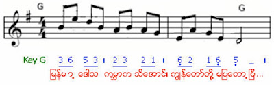 “မိုးေတြကလဲ၊မစဲဘဲရြာေနတယ္၊ ျမစ္ေခ်ာင္းအင္းအိုင္ေရေတြ ျပည့္လို႔ … ငါတို႔တိုက္ရတယ္၊ ဘာမထီ ငါတို႔စစ္သားေကာင္း… ”