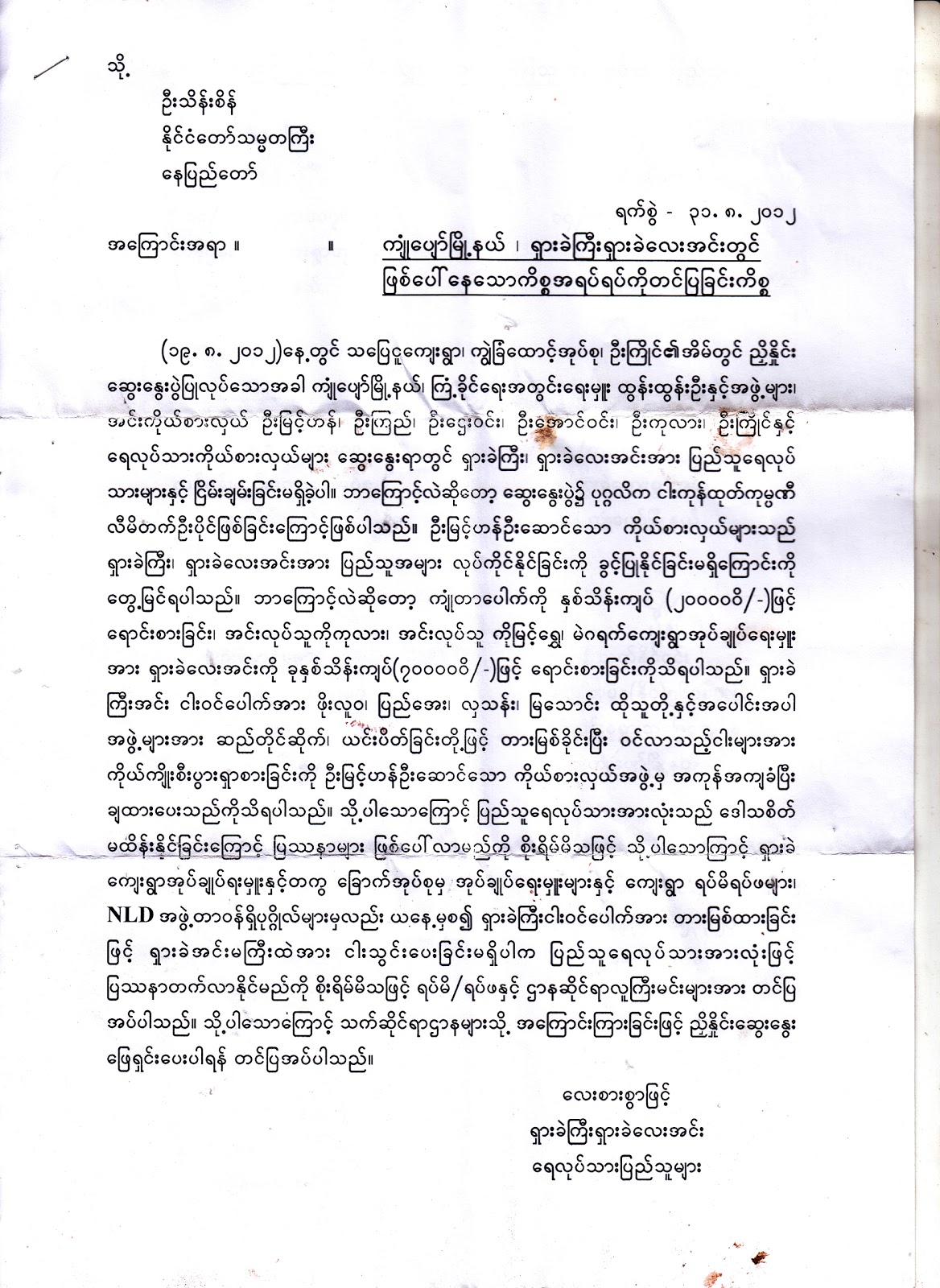 မိုုးမခထံေပးစာ၊ ဟသၤာတျပည္သူမ်ား၊ စက္တင္ဘာ ၇၊ ၂၀၁၂