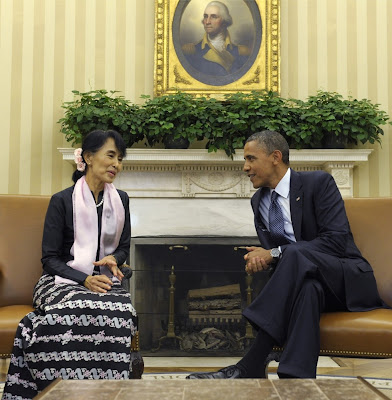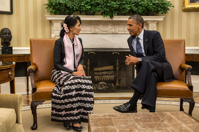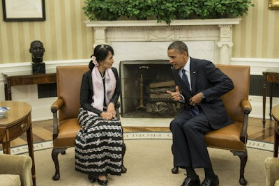 ျမန္မာ့ဒီမုိကေရစီေခါင္းေဆာင္ ေဒၚေအာင္ဆန္းစုၾကည္သည္ ယမန္ေန႔က အိမ္ျဖဴေတာ္သုိ႔ သြားေရာက္ လည္ပတ္ျပီး သမၼတ အုိဘားမားႏွင့္ ေခတၱေတြ႔ဆုံသည္။