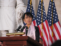 ယေန႔ ေန႔ခင္း ၃ နာရီက အေမရိကန္ျပည္၊ ၀ါရွင္တန္ဒီစီ ျမိဳ့ေတာ္၊ လႊတ္ေတာ္အေဆာက္အဦ၊ Rotunda ခန္းမေဆာင္မွာ လႊတ္ေတာ္ရဲ့ အရပ္သားမ်ားအေပၚ အျမင့္မားဆုုံး ဂုုဏ္ထူးေဆာင္ဆုုျဖစ္တဲ့ လႊတ္ေတာ္ေရႊတံဆိပ္ဆုုကိုု လက္ခံရယူခဲ့ပါတယ္။ ျမန္မာ့အေရးကိုု ေတာက္ေလ်ာက္ ရြက္ေဆာင္ခဲ့ၾကတဲ့ အေမရိကန္ျပည္က ၂ ဖက္လႊတ္ေတာ္ ေခါင္းေဆာင္မ်ား၊ အစုုိးရေခါင္းေဆာင္မ်ားနဲ႔အတူ ယခင္သမၼတကေတာ္ ေလာ္ရာဘြတ္ခ်္လည္း တက္ေရာက္ ဂုုဏ္ျပဳပါတယ္။