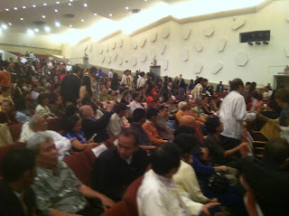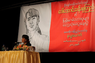 ယေန႔ ေန႔ခင္းက ျပဳလုုပ္တဲ့ နယူးေယာက္ျမိဳ႔ေတာ္၊ ကြင္းစ္ေကာလိပ္မွာ ျပဳလုုပ္တဲ့ ျမန္မာမိသားစုုမ်ားနဲ႔ ေဒၚေအာင္ဆန္းစုၾကည္ေတြ႔ဆုုံပြဲမွာ ဧည့္ပရိသတ္ ၂၀၀၀ ေက်ာ္ တက္ေရာက္ၾကတာကိုုေတြ႔ရပါတယ္။ ၾကိဳတင္ဧည့္လက္မွတ္ ထုုတ္ေပးျခင္းမရွိဘဲ တန္းစီစနစ္နဲ႔ ၀င္ေရာက္ၾကရတာမိုု႔ နံနက္ေစာေစာကတည္းက ျမန္မာ့အေရး စိတ္၀င္စားသူမ်ား၊ ေဒၚစုုႏွင့္ ေတြ႔ဆုုံလိုုသူမ်ား ၾကိဳတင္တန္းစီးေနၾကတာကိုု ေတြ႔ရပါတယ္။ ေဒၚေအာင္ဆန္းစုုၾကည္က ပြဲခင္းထဲက တင္သြင္းတဲ့ ေမးခြန္းစာရြက္မ်ားကိုု မဲႏႈိက္ျပီး ေျဖၾကားေပးသြားပါတယ္။