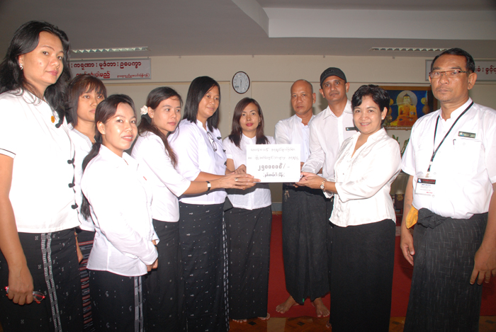 ၁.၉.၂ဝ၁၂ ရက္ေန႔ ညေန (၄းဝဝ) နာရီအခ်ိန္တြင္ ရန္ကုန္ၿမိဳ႕၊ MCC ခန္းမေဆာင္၌ က်င္းပျပဳလုပ္ခဲ့သည့္ ျမန္မာျပည္တြင္းရွိ နာမည္ႀကီး တီးဝိုင္း အမ်ားဆံုးပါဝင္ခဲ့ည့္ ၈၈ မ်ဳိးဆက္ေက်ာင္းသားမ်ား ရန္ပံုေငြ “ေစတနာဝႆန္ ဂီတေဖ်ာ္ေျဖပြဲ” အခမ္းအနားတြင္ ရ႐ွိသည့္ အလွဴေငြ မွ (၂၅) သိန္းက်ပ္တိတိအား နာေရးကူညီမႈအသင္း (ရန္ကုန္) သို႔ လာေရာက္လွဴဒါန္းမႈ ျပဳလုပ္ခဲ့သည္။