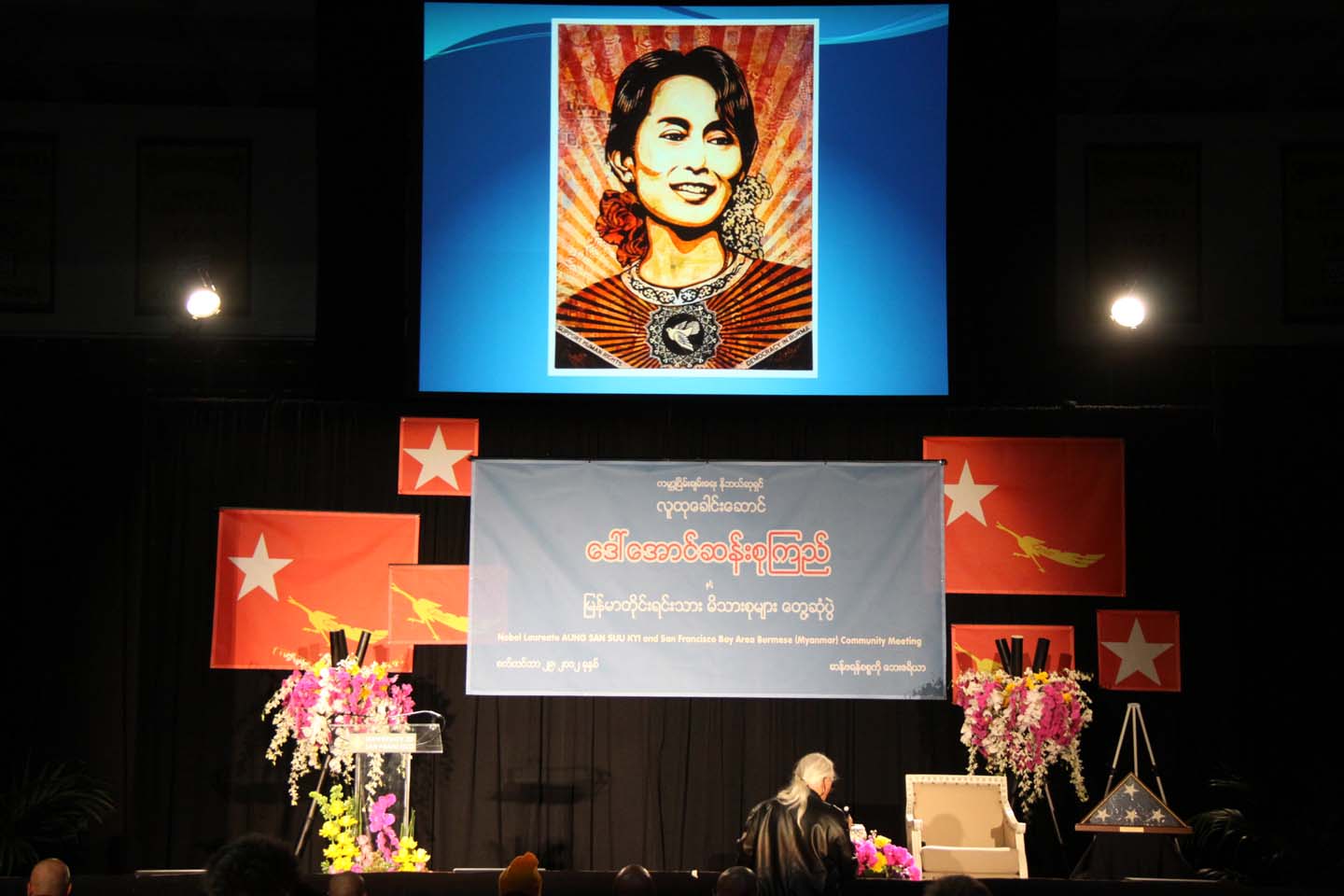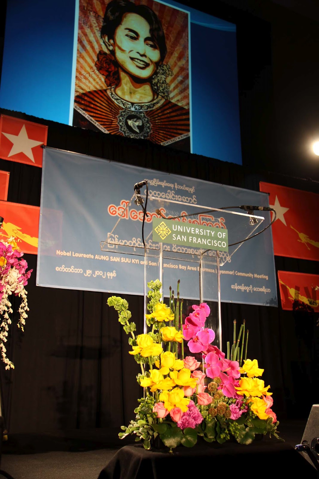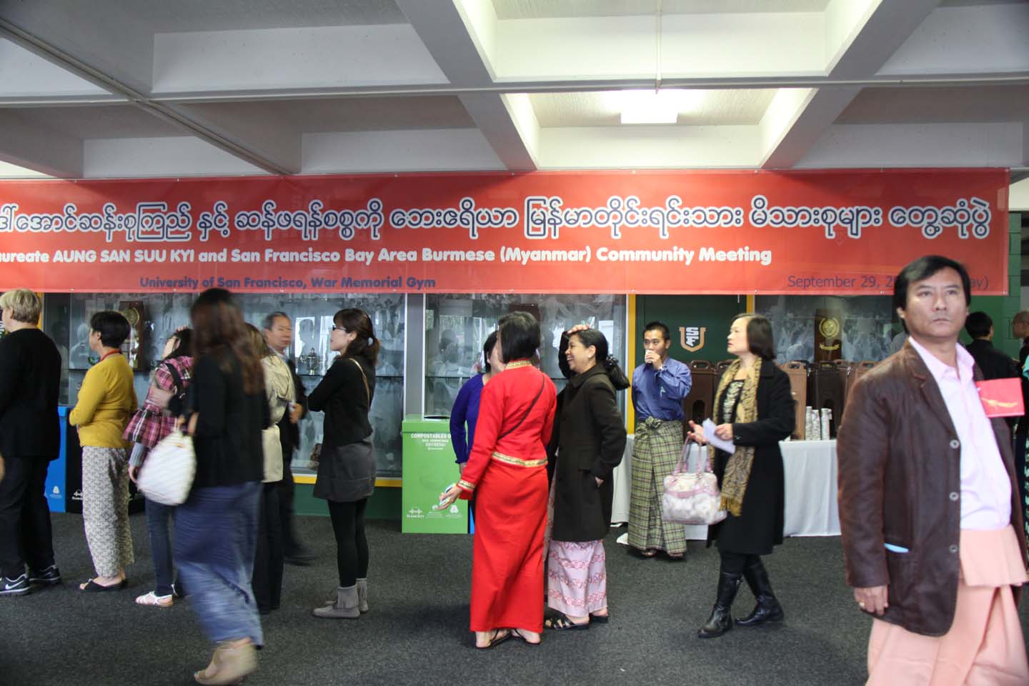 ယမန္ေန႔က ဆန္ဖရန္စစၥကိုေဘးဧရိယာ ျမန္မာတိုင္းရင္းသားမိသားစုမ်ားႏွင့္ ေဒၚေအာင္ဆန္းစုၾကည္ေတြ႔ဆုံပြဲကို ဆန္ဖရန္ျမိဳ႔ေတာ္၊ USF တကၠသိုလ္ပရ၀ုဏ္တြင္းရွိ အားကစားခမ္းမမွာ က်င္းပခဲ့သည္။