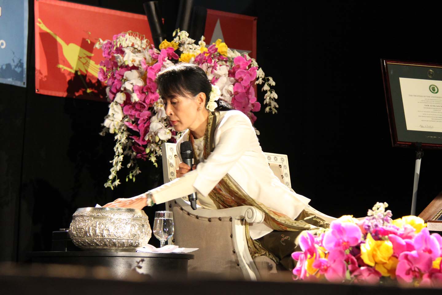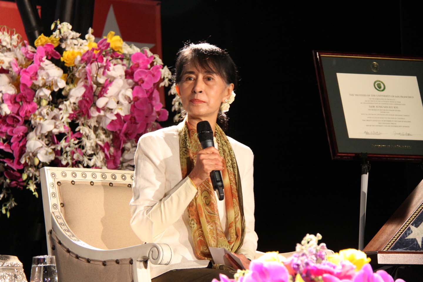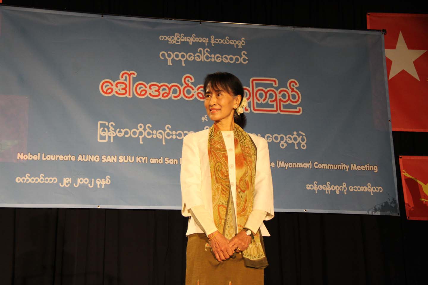 ယမန္ေန႔က ဆန္ဖရန္စစၥကိုေဘးဧရိယာ ျမန္မာတိုင္းရင္းသားမိသားစုမ်ားႏွင့္ ေဒၚေအာင္ဆန္းစုၾကည္ေတြ႔ဆုံပြဲကို ဆန္ဖရန္ျမိဳ႔ေတာ္၊ USF တကၠသိုလ္ပရ၀ုဏ္တြင္းရွိ အားကစားခမ္းမမွာ က်င္းပခဲ့သည္။