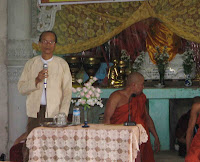 ခရစ္ယာန္ဘာသာ၀င္ျဖစ္သူ ေရွ႕ေနဦးတင္၀င္း၊ ဗုဒၶဘာသာ၀င္ျဖစ္သူ ဦးေအာင္ျမင့္၊ အစၥလာမ္ဘာသာ၀င္ျဖစ္သူ ဦးေသာင္းစိန္ႏွင့္ ဟိႏၵဴ ဘာသာ၀င္တဦးတုိ႔မွ အသီးအသီး အမွာစကားေျပာၾကားခဲ့ပါတယ္။ အခမ္းအနားအၿပီးမွာ ေရႊ၀ါေရာင္ဆရာေတာ္မ်ားသည္ ပဲခူးၿမိဳ႕၊ ၿမိဳ႕ ေရွာင္လမ္းတြင္ မတရားသျဖင့္ အဖ်က္ခံထားရေသာ ဘုန္းႀကီးေက်ာင္းမ်ားေနရာမ်ားသုိ႔ ႂကြေရာက္ၾကည့္႐ႈခဲ့ၾကပါတယ္။ ထုိ႔ေနာက္ ဆရာေတာ္ေတြဟာ မြန္းလြဲ ၂ း ၃၀ အခ်ိန္တြင္ ရန္ကုန္ၿမိဳ႕သုိ႔ ျပန္လည္ႂကြခ်ီေတာ္မူသြားပါတယ္။