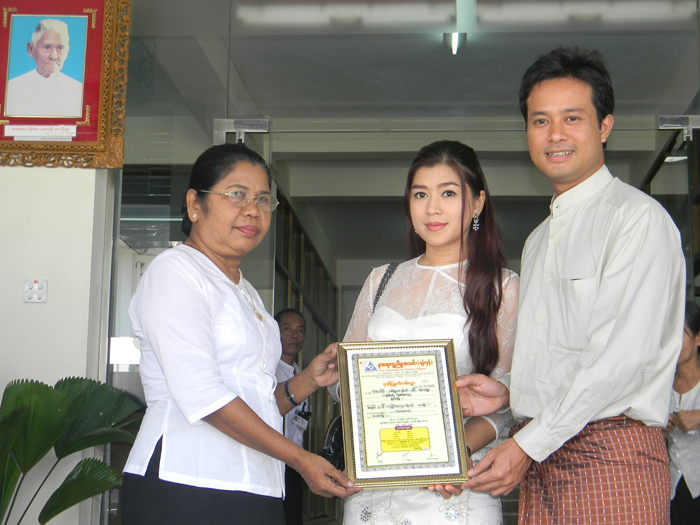 ၁၁.၁ဝ.၂ဝ၁၂ ရက္ေန႔ ေန႔လည္ (၂း၃ဝ) နာရီအခ်ိန္တြင္ နာေရးကူညီမႈအသင္း (ရန္ကုန္) ရွိ တာဝန္႐ွိသူမ်ားသည္ သဃၤန္းကၽန္းၿမိဳ႕နယ္ စံျပ ေဆး႐ံုမွ အေရးေပၚလိုအပ္ေနသည့္ ေဆး႐ံုႀကီး၏ အေအး ခန္း႒ာနတြင္ အသံုးျပဳရန္အတြက္ Mitsubishi အမ်ိဳးအစား ေလြေအးေပး စက္ တစ္လံုး (တန္ဖိုး ၆၁၈ဝဝဝိ/- ေျခာက္သိန္းတစ္ေသာင္းရွစ္ေထာင္က်ပ္) ႏွင့္ ေဆးဝါးပစၥည္းမ်ိဳးစံု (တန္ဖိုး ၃၇၅ဝဝိ/- သံုးေသာင္းခုႏွစ္ ေထာင့္ငါးရာက်ပ္) တို႔အား သြားေရာက္လွဴဒါန္းေပးအပ္ခဲ့သည္။