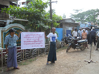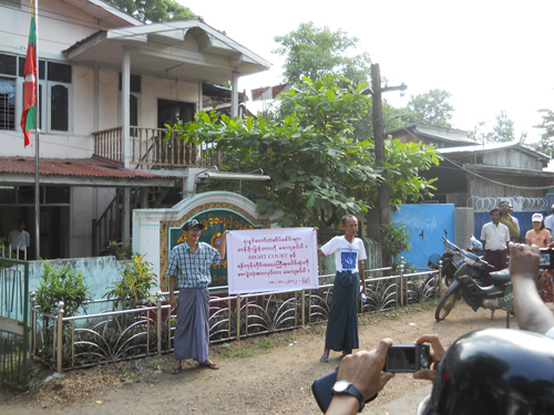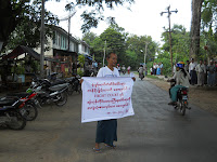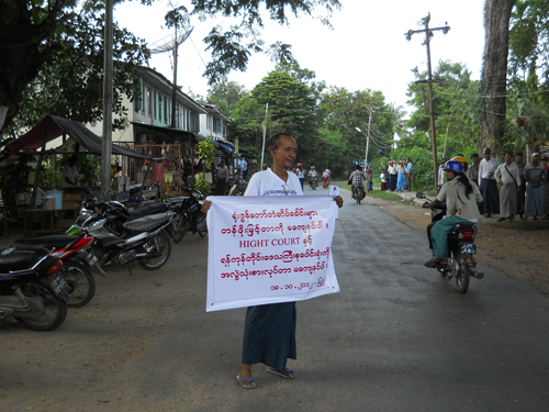 ၂၀၁၂ ခုႏွစ္၊ ေအာက္တုိဘာလ ၁၈ ရက္ေန႔က ျပည္ၿမိဳ႕တြင္ တရားလႊတ္ေတာ္ေရွ႕ေန ဦးျမင့္ေအး တကုိယ္ေတာ္ဆႏၵျပခဲ့တယ္လုိ႔ သိရပါ တယ္။ ႐ုံးခြန္ေတာ္တံဆိပ္ေခါင္းမ်ား တန္ဖုိးျမႇင့္တာအျပင္ Hight Court နဲ႔ ရန္ကုန္တုိင္းေဒသႀကီး စုေပါင္း႐ုံးကုိ အလြဲသုံးစားလုပ္တာ မေက်နပ္ျခင္းေၾကာင့္ ဆႏၵျပရျခင္း ျဖစ္ေၾကာင္း သိရပါတယ္။ အဆုိပါ စာသားမ်ားကုိ ဗြီႏုိင္းပုိစတာတခုတြင္႐ုိက္ႏွိပ္ထားၿပီး ျပည္ခ႐ုိင္ တရား႐ုံးေရွ႕၊ အခြန္႐ုံးႏွင့္ ျပည္ေထာင္စုၾကံ့ခုိင္ေရးႏွင့္ ဖြံ႕ၿဖိဳးေရး႐ုံးတုိ႔ေရွ႕မွာ တကိုယ္ေတာ္ဆႏၵျပခဲ့ျခင္းျဖစ္ပါတယ္။ ဆႏၵထုတ္ေဖာ္မႈဟာ ညေန ၄ နာရီ၀န္းက်င္ခန္႔မွာ ၿပီးဆုံးခဲ့ေၾကာင္း သိရပါတယ္။