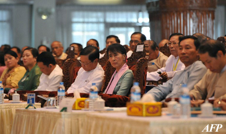 “(၂၀၀၈)အေျခခံဥပေဒက စစ္တပ္ကို လြန္လြန္ကဲကဲ အာဏာေတြအပ္ႏွင္းထားတယ္၊ စစ္တပ္က ဒီအာဏာေတြ ပုိင္ဆုိင္ေန သမွ် ဒီမုိကေရစီလမ္းေၾကာင္းမွန္ေပၚကုိ ေရာက္တယ္လို႔ ကၽြန္မတုိ႔ေျပာလုိ႔မရပါဘူး၊၊ ဒါေၾကာင့္ပဲ ကၽြန္မတုိ႔က တရားဥပေဒ စုိးမုိးေရး ရယ္၊ တုိင္းရင္းသားပဋိပကၡေတြအဆံုးသတ္ေရးရယ္၊ အေျခခံဥပေဒကိုျပင္ဆင္ေရးရယ္ သံုးခ်က္ကို ဒြန္တြဲထားတာပါ။ ဒါေတြ အားလံုး ဆက္စပ္ေနပါတယ္။ ဒီမုိကေရစီကိုျပန္လည္ရခ်င္တယ္ဆုိရင္ ဒီသံုးခု ရကုိရမွ ျဖစ္မယ္။ ဒီသံုးခုမွာ တစ္ခုမရွိရင္ ေနာက္ ႏွစ္ခု လည္း အလုပ္မျဖစ္ပါဘူး။ အေျခခံဥပေဒကိုမျပင္ဘဲ ဥပေဒစုိးမုိးေရးနဲ႔ တုိင္းရင္းသားၿငိမ္းခ်မ္းေရး ဆုိတာမရႏုိင္သလို ဥပေဒစုိးမုိးမႈမရွိဘဲနဲ႔ တျခားႏွစ္ခုကိုလည္း မရႏုိင္ပါဘူး”